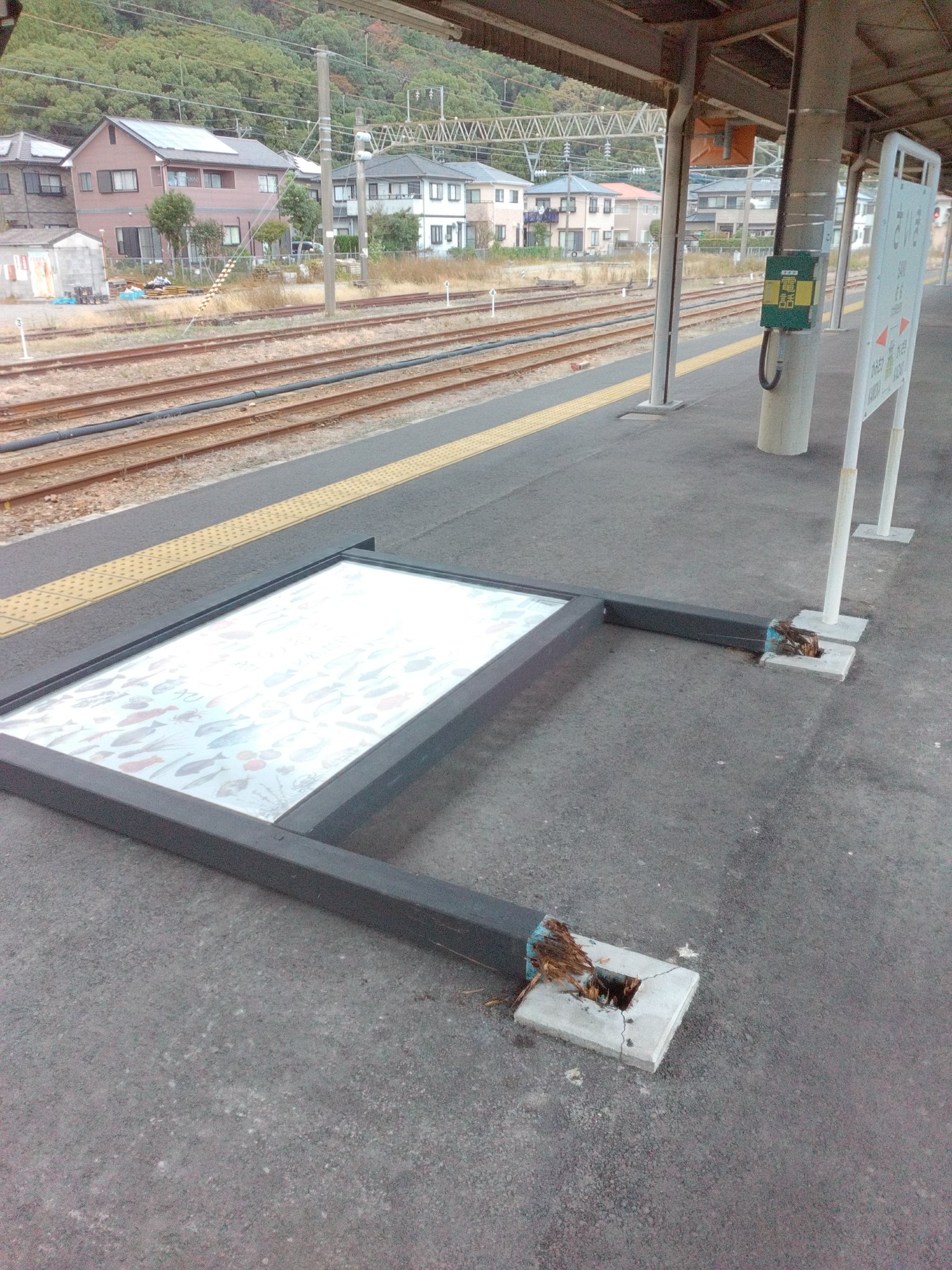 佐伯駅のホームに設置された看板倒れる 柱がシロアリにより浸食 強風の影響か 大分 (画像:JR九州提供)https://t.co/APiRUjnYqP https://t.co/bjPlnUdgNZ