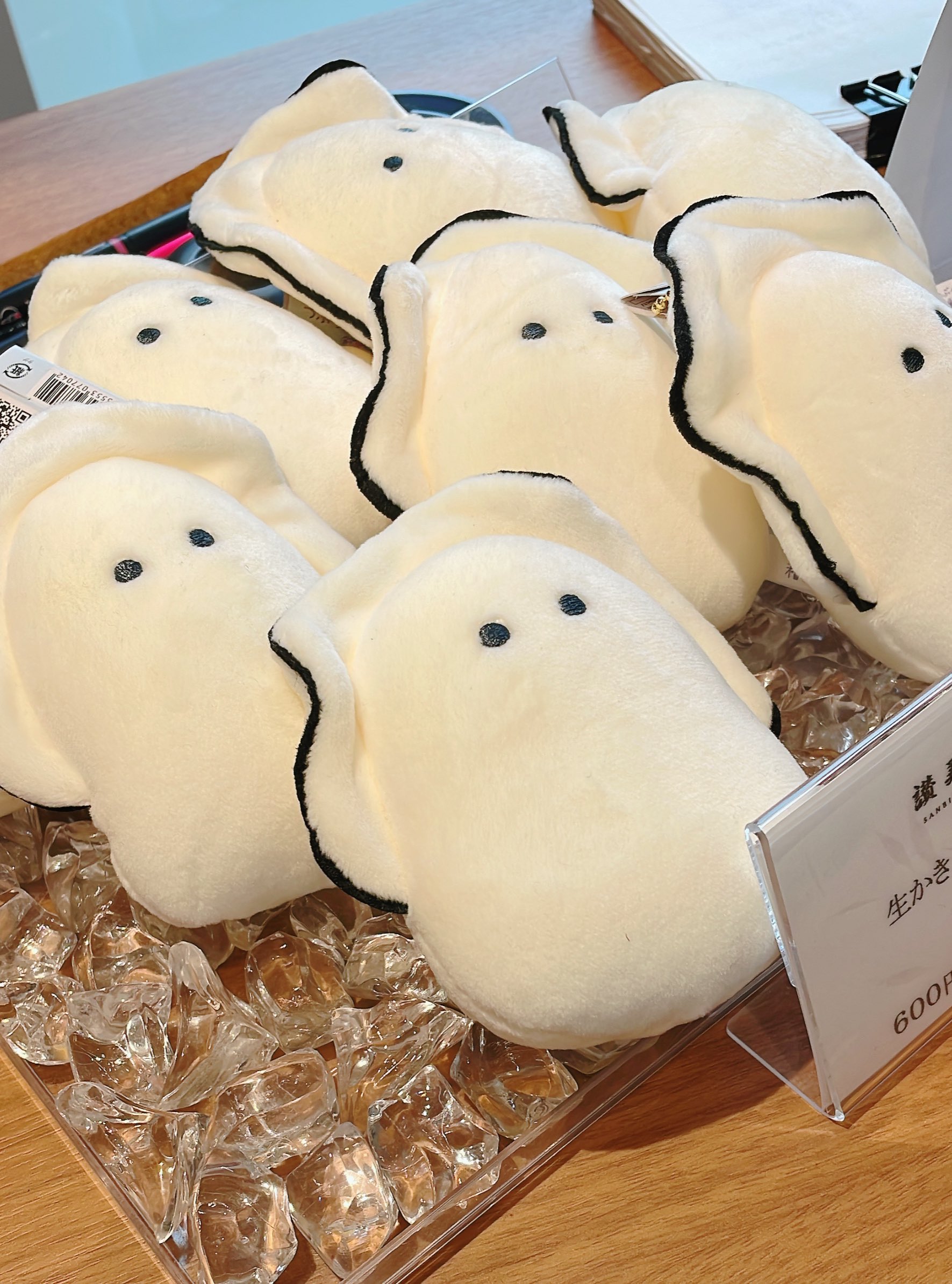 広島の宮島口のフェリー乗り場のお店で色々見ていると、カウンター奥に牡蠣のぬいぐるみが置いてありまして。置き場所として正解すぎたので撮影。※撮影許可取得済み https://t.co/izrt4FTLja