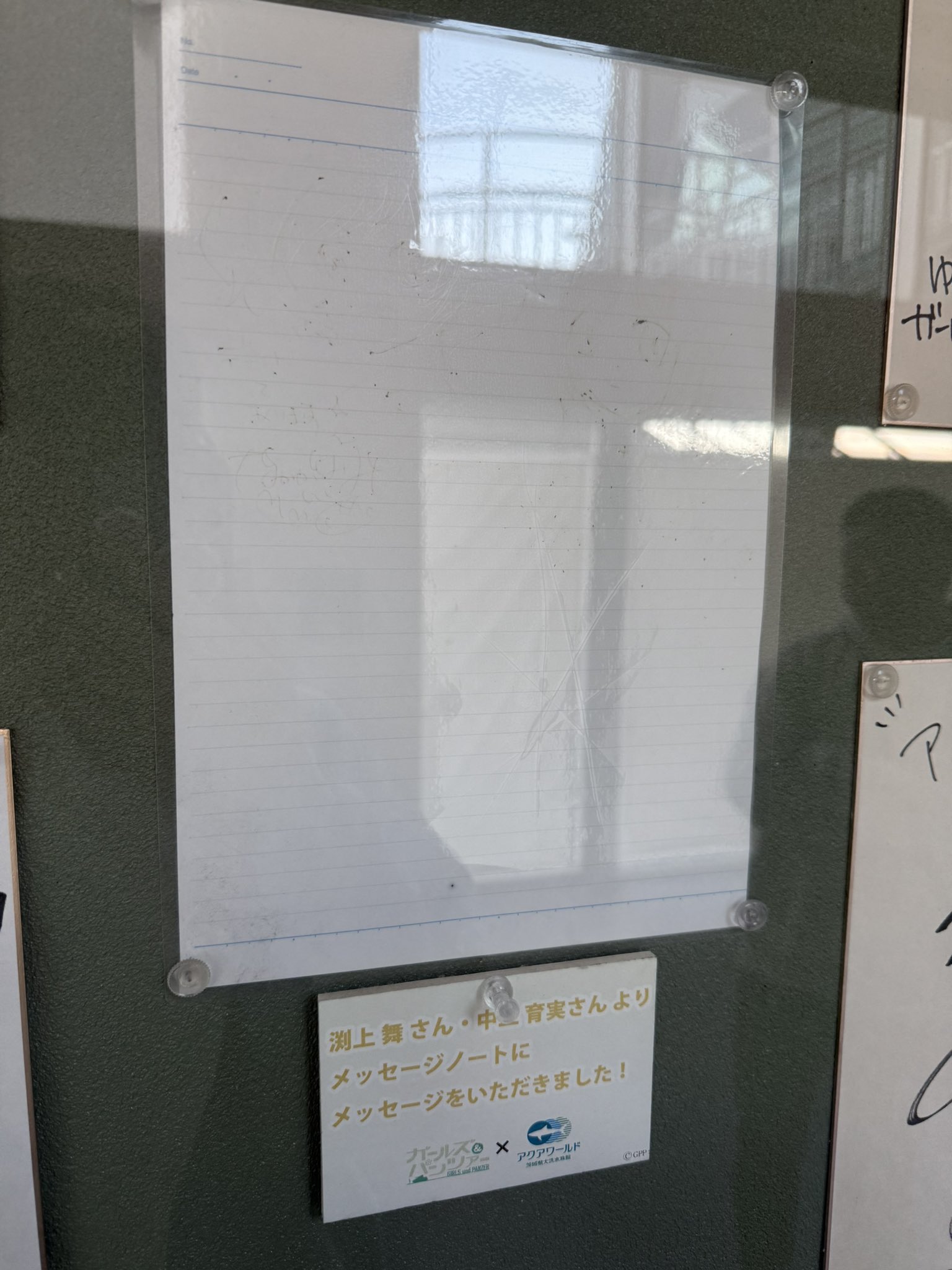 こちら大洗水族館名物『恐らくフリクションボールペンで書いたため何もかもが無となった渕上舞さんと中上育実さんのメッセージノート』です https://t.co/MJMHykQJXz