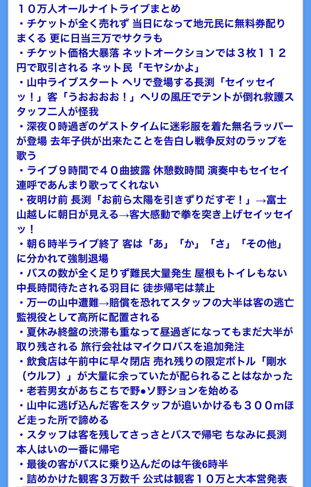 ドリカム中村さんが炎上していましたが、ここで長渕剛10万人オールナイトライブの伝説の数々をご覧いただきましょう。