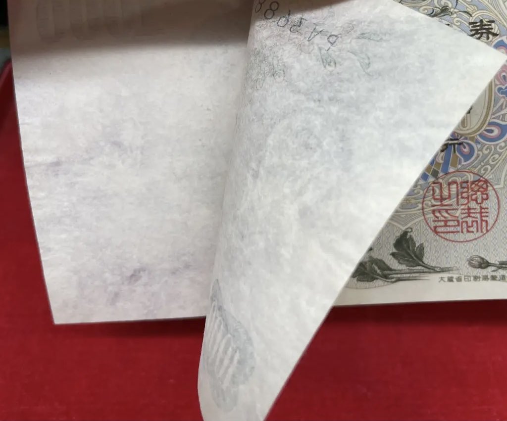 多分30年以上前のテレビドラマで「お札って実は2枚貼り合わせてあって頑張れば剥がせるんだぜ」って言ってて、真似したけど全然剥がせなかったんだよね。なるほど、プレミア付くほど剥がれにくいものだったんだなぁ。