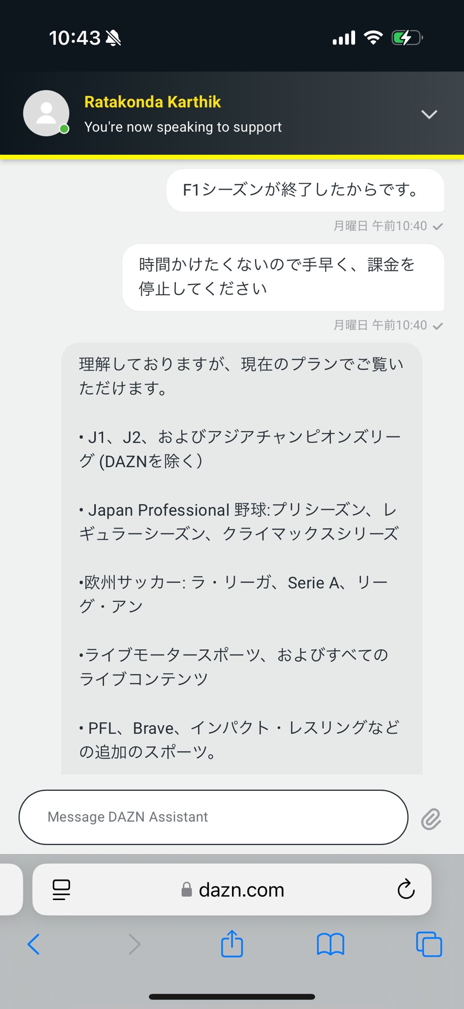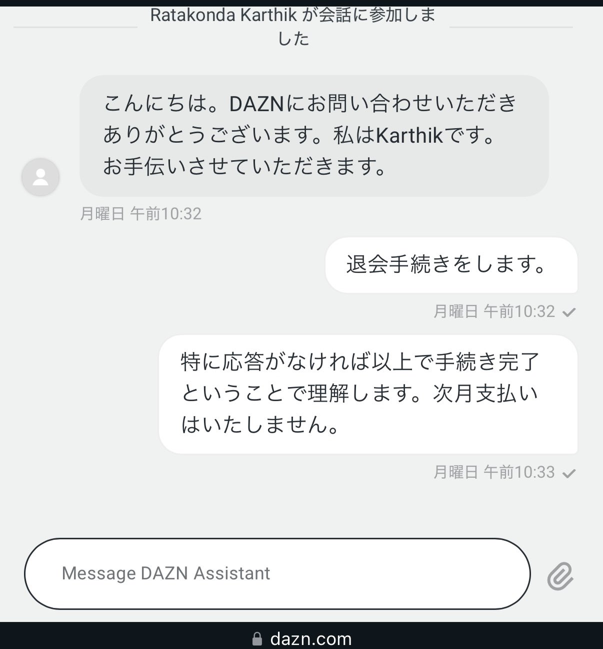@1u_ym @dazngroup @DAZN_JPN FF外から失礼します。僕の時も本当にしつこくて、「そういうのいらないんで早く退会させて下さい。」と言ってしまいました。チャット開始から30分でようやく退会処理出来ました。