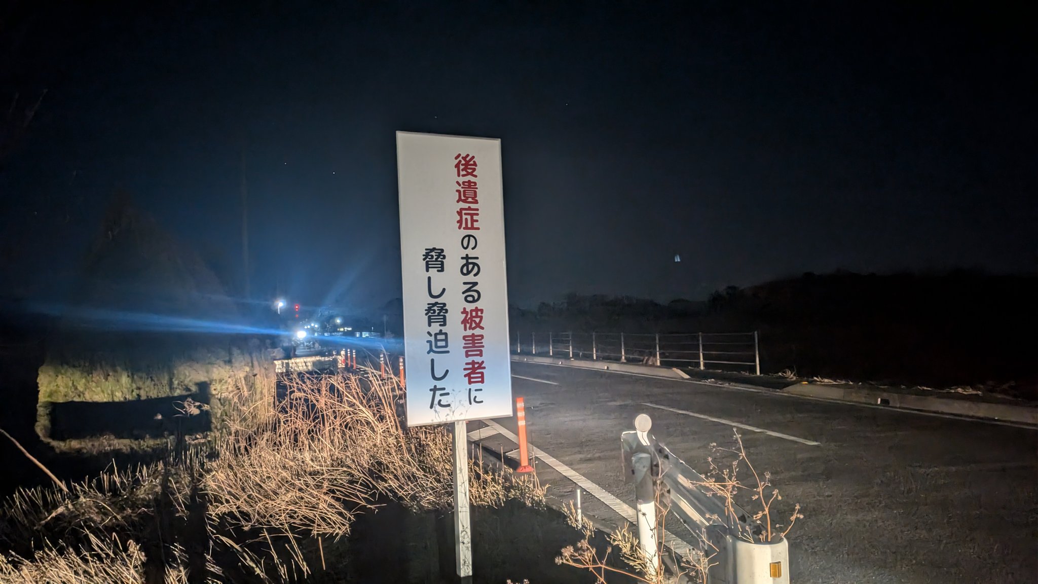 当該地のストリートビューを見ると、土地境界立ち会いで使うようなポールが立ってて、かつ歩道がここだけ途切れていて、看板はまだ無いので、「(境界立会にて道路管理者は)後遺症のある被害者(土地所有者)を脅し(土地を放棄するよう)脅迫した」みたいな…妄想の域を出ないけど、ホラーよりはまあ…