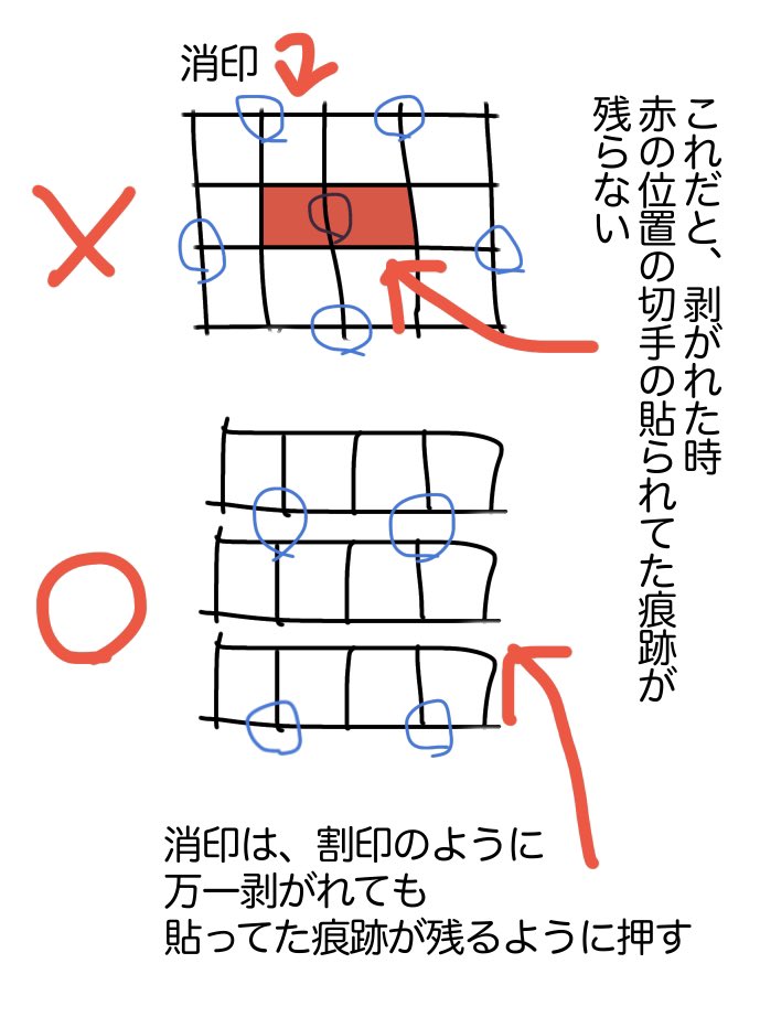 懐かしい局員時代、時々遭遇しました切手は隙間なく貼らずに列の隙間は空けておいてくださいとよくお願いしてました剥がれた時に貼り忘れや不足じゃないことが分かるように割印として残る形で消印を押すからです https://t.co/M57rdxN0JL