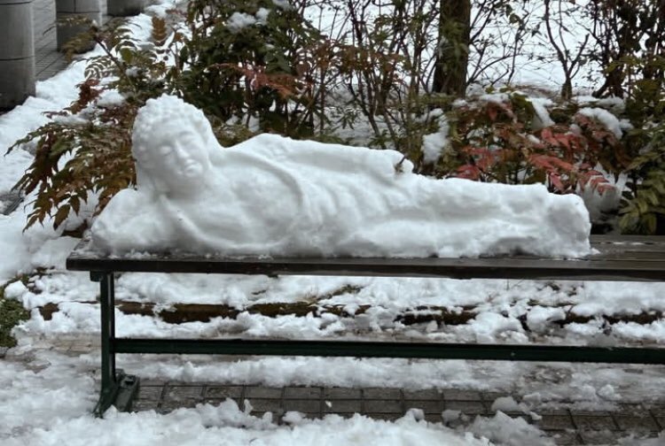 なんかベンチに居るんですけど…雪だるまならわかるまさかの _人人人人人人人人人_ > 涅槃像 <  ̄^Y^Y^Y^Y^Y^Y^Y^ ̄コレが伝統工芸の学校… https://t.co/cLLpPMQbSP