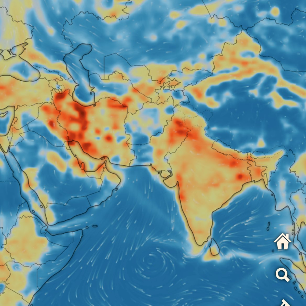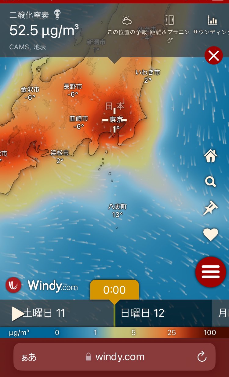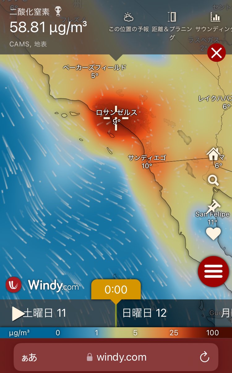 大規模火災が起きてるロサンゼルスのCOとNO2濃度ヤバいなとか思いながらWindy眺めてたら何も起きてないのにほぼ全域でそれを凌駕する国があった。 https://t.co/4ZMv5vwaJY