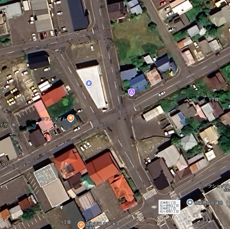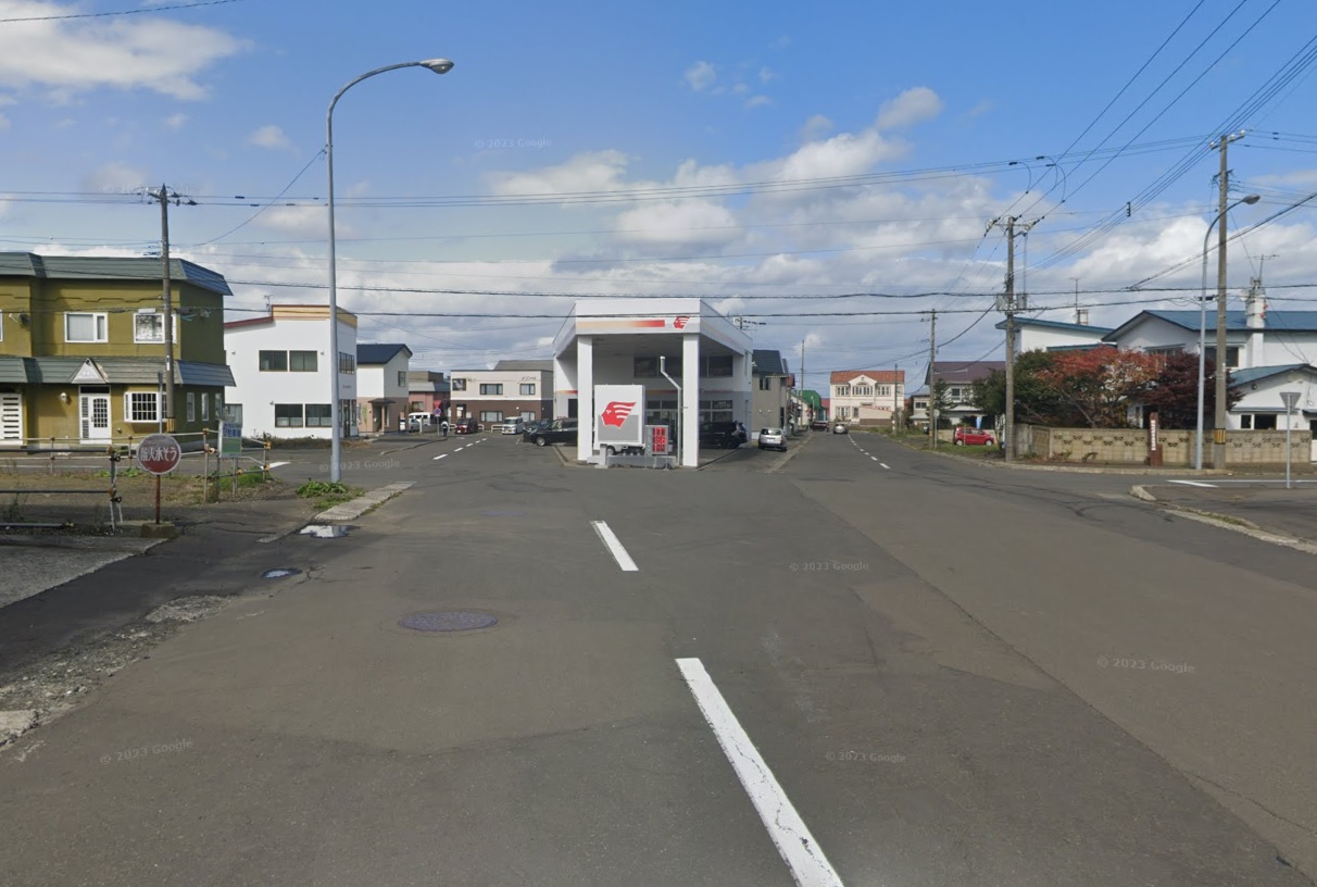 根室のストビューを見ていたら凄い形の交差点を見つけた。2本の道が微妙な角度で分かれていくうえ、途中で中央線を跨がないと右の道に行けないし、直進に至っては方角が変わらないのにハンドルを切らないと対向車線に突っ込むという異様さ。#道路 https://t.co/n7KEBQCmr1