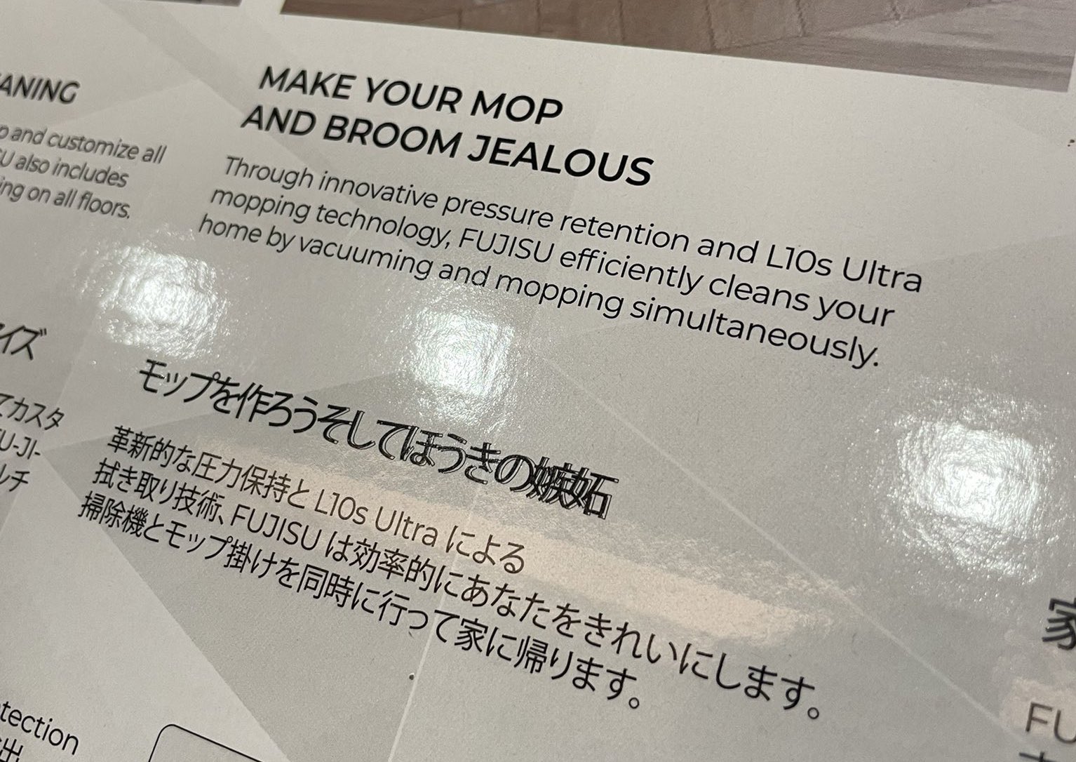 @imajun やって貰おうじゃないか🤣「FUJISUは効率的にあなたをきれいにします。」あと「モップとほうきが嫉妬するでしょう」という英語が改行でMAKE YOUR MOP 「モップを作ろう」AND BROOM JEALOUS 「そしてほうきの嫉妬」になっちゃった🤣 https://t.co/127pzO7bJg