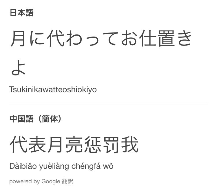 【物騒】中国人が「月に代わってお仕置きよ!」を日本語に翻訳した結果www