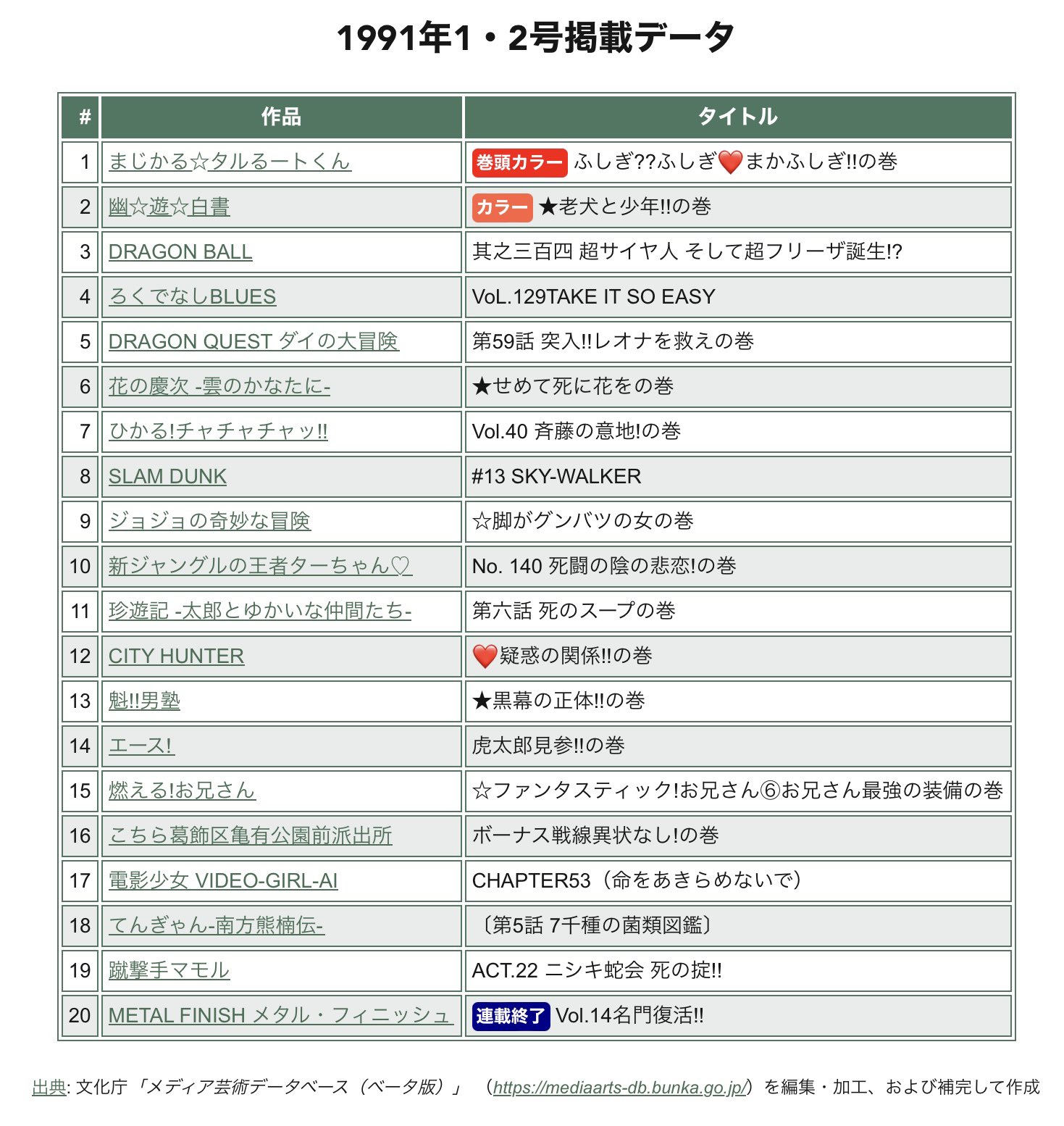 @mmm_sss_fesh 左の1991年1.2号の豪華連載陣。続きを楽しみにされていたことでしょう今ごろ天国で鳥山明先生にサインもらっているといいですね健康で生きていることに感謝画像元https://t.co/UYZmVjyNhb https://t.co/qAPaDxAcZ7