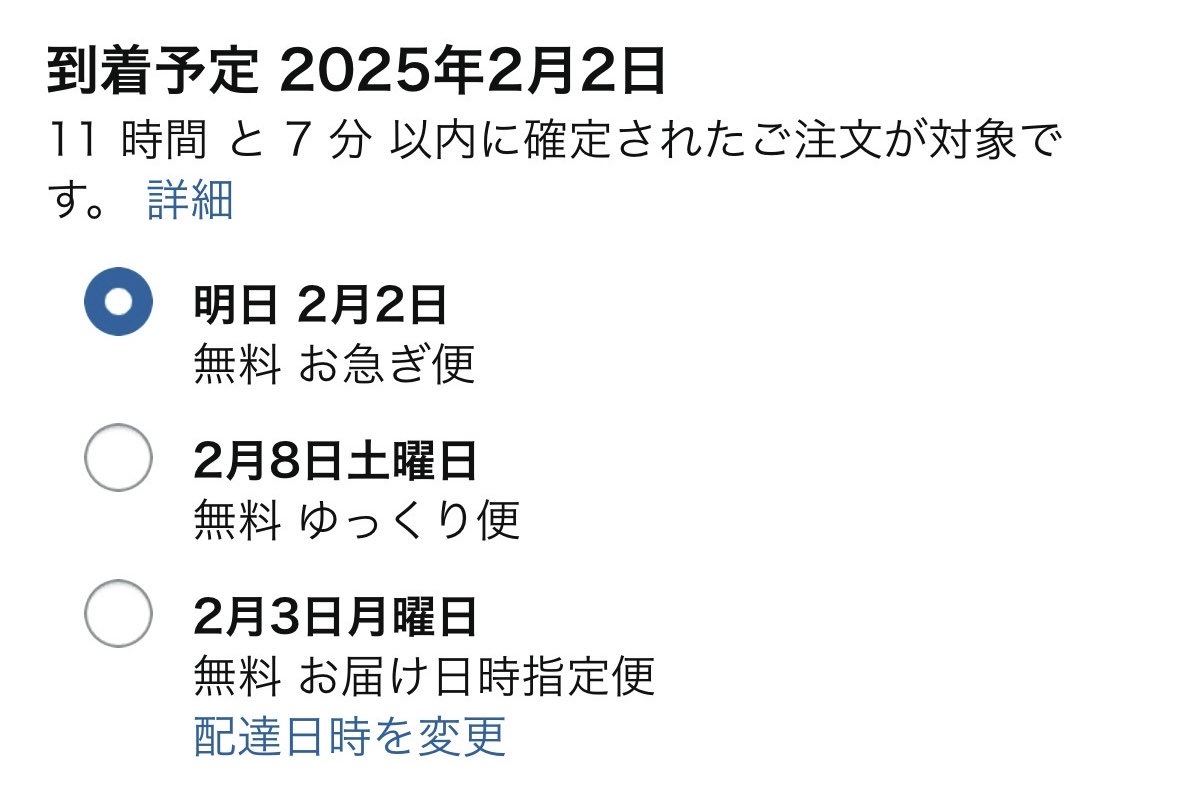 少し遅めに日付指定しようかなと思ったものにちょうどよくこの「ゆっくり便」が現れて、ありがたく使わせてもらった急がなくていいときに選べると嬉しい