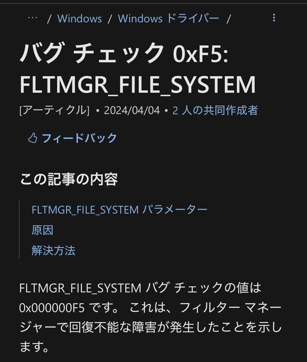 ブルースクリーン見ると調べちゃうの職業病なんよなw https://t.co/77tXasCI3H