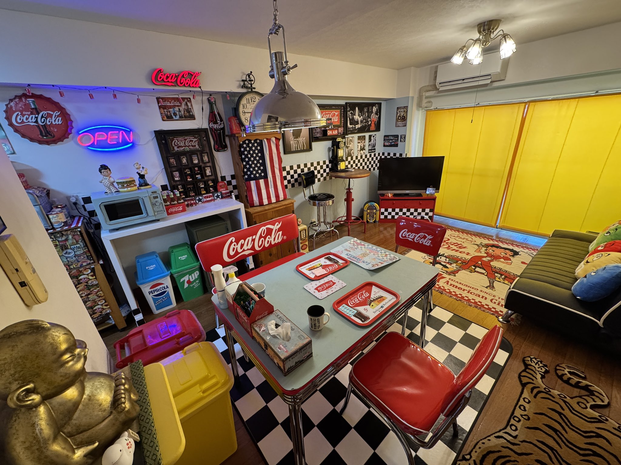 ビリケンさん居なければ80年代のアメリカ風な部屋って感じなのにビリケンさんがいるから、あつ森で作った色んな物が飾ってある部屋って感じがする。
