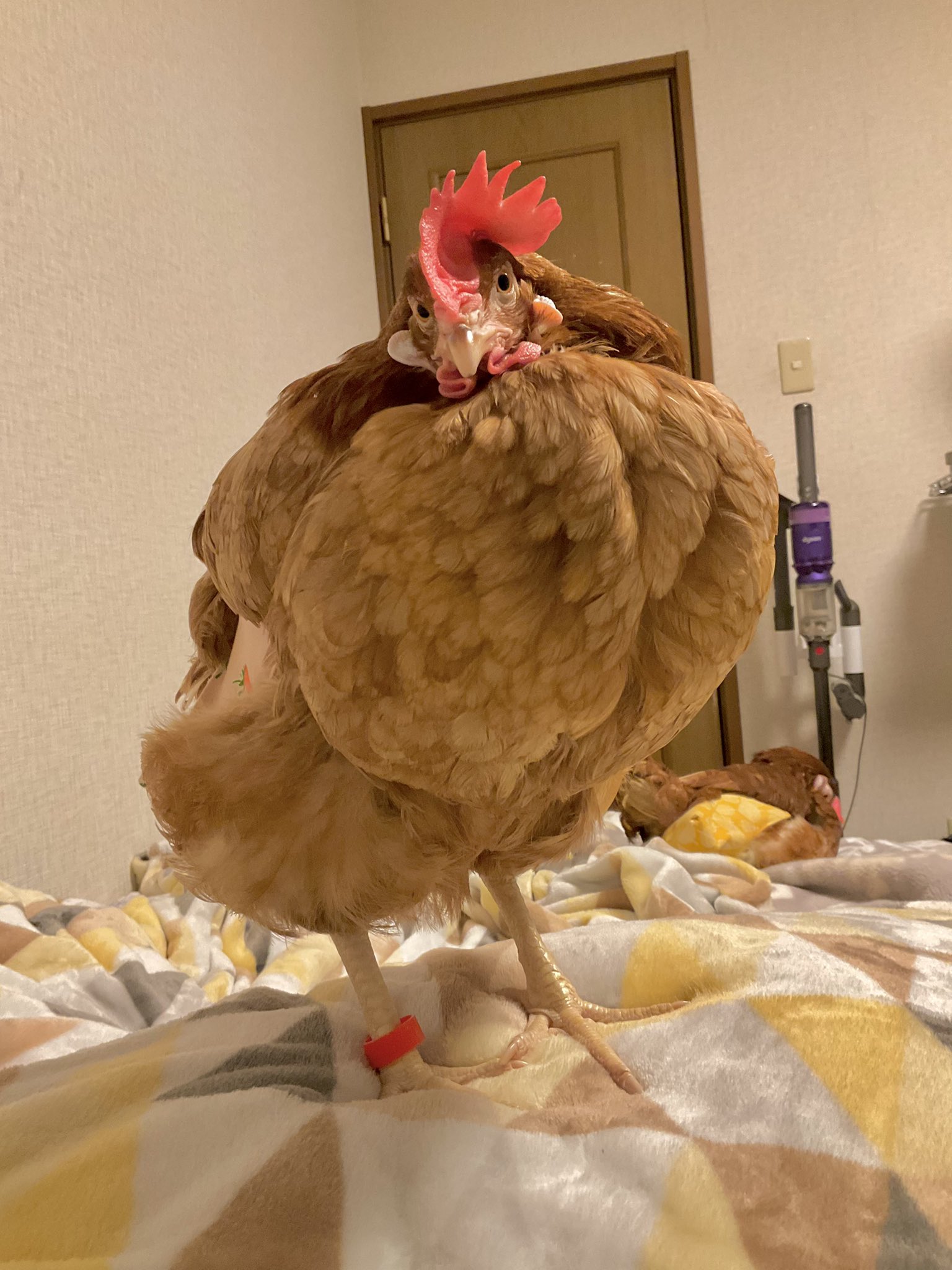 筋肉で膨らんでいるワケではないんですが・・・。しかしこの佇まい、ディズニーの『ロビンフッド』でオープニング歌ってたニワトリですかね。