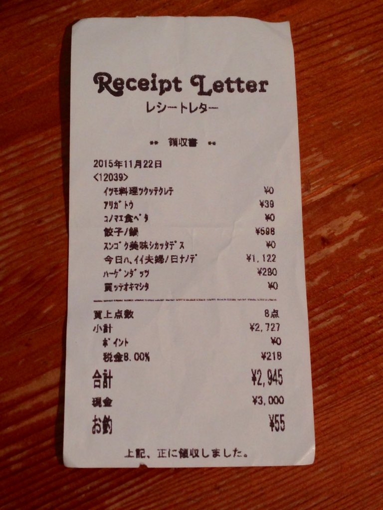 夫が机に置いたレシート、よく見たら手紙でほっこりした😄