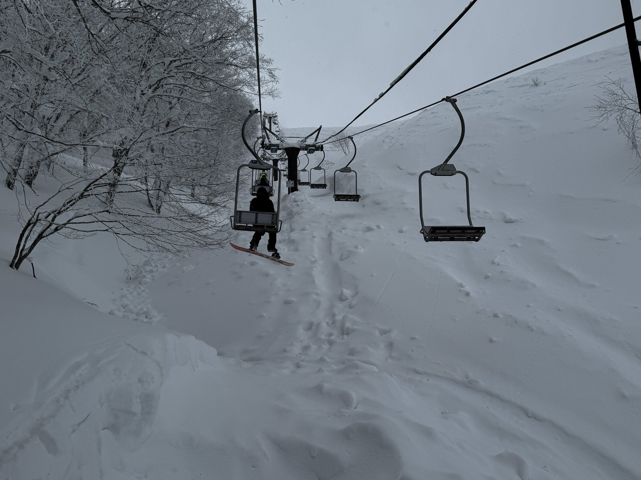 頭頂部に行くリフトかな?こりゃ積雪量が今年はすごいなー
