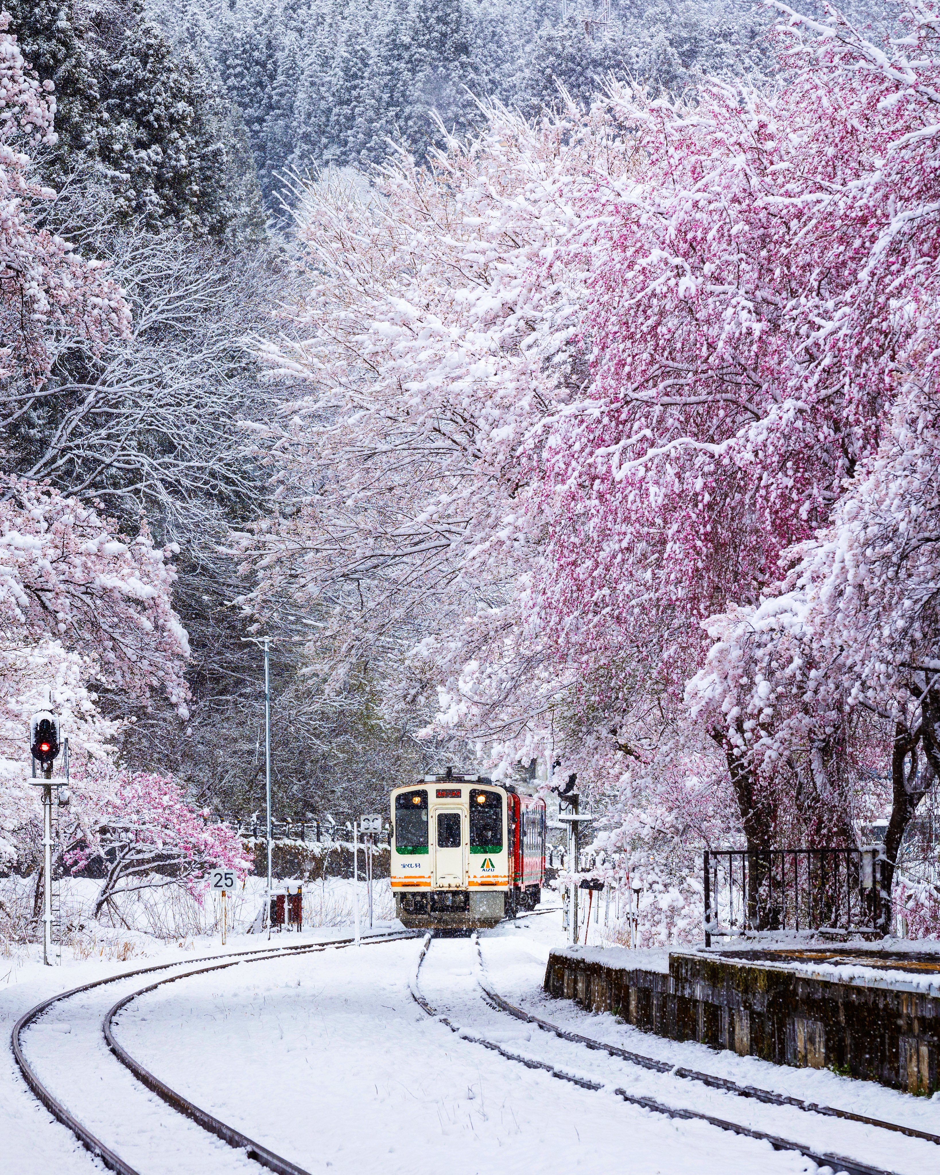 #流石にシャッターボタンを押す指が震えた瞬間やはりこの日🌸❄️千葉県から福島県会津へ桜と雪が重なる日に行けるなんて機会あるかないかわからないから本当に緊張した#東京カメラ部 https://t.co/hlnBTEIqYA