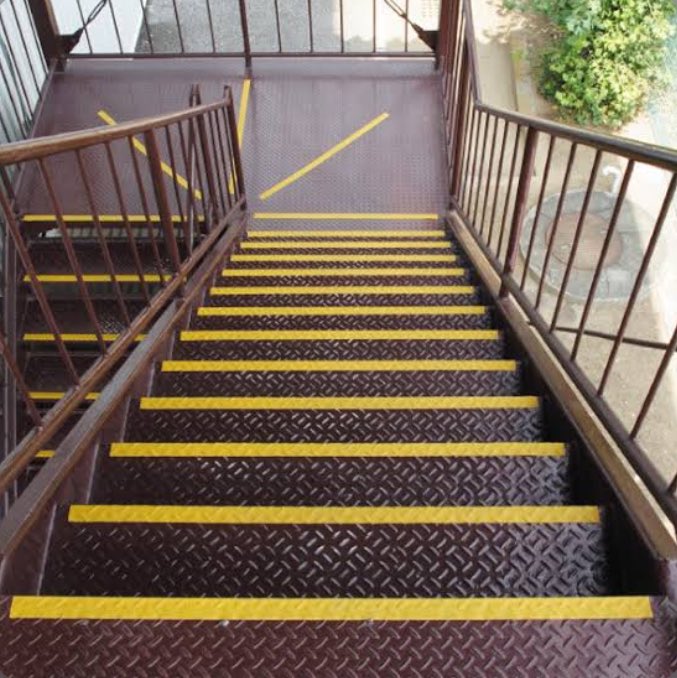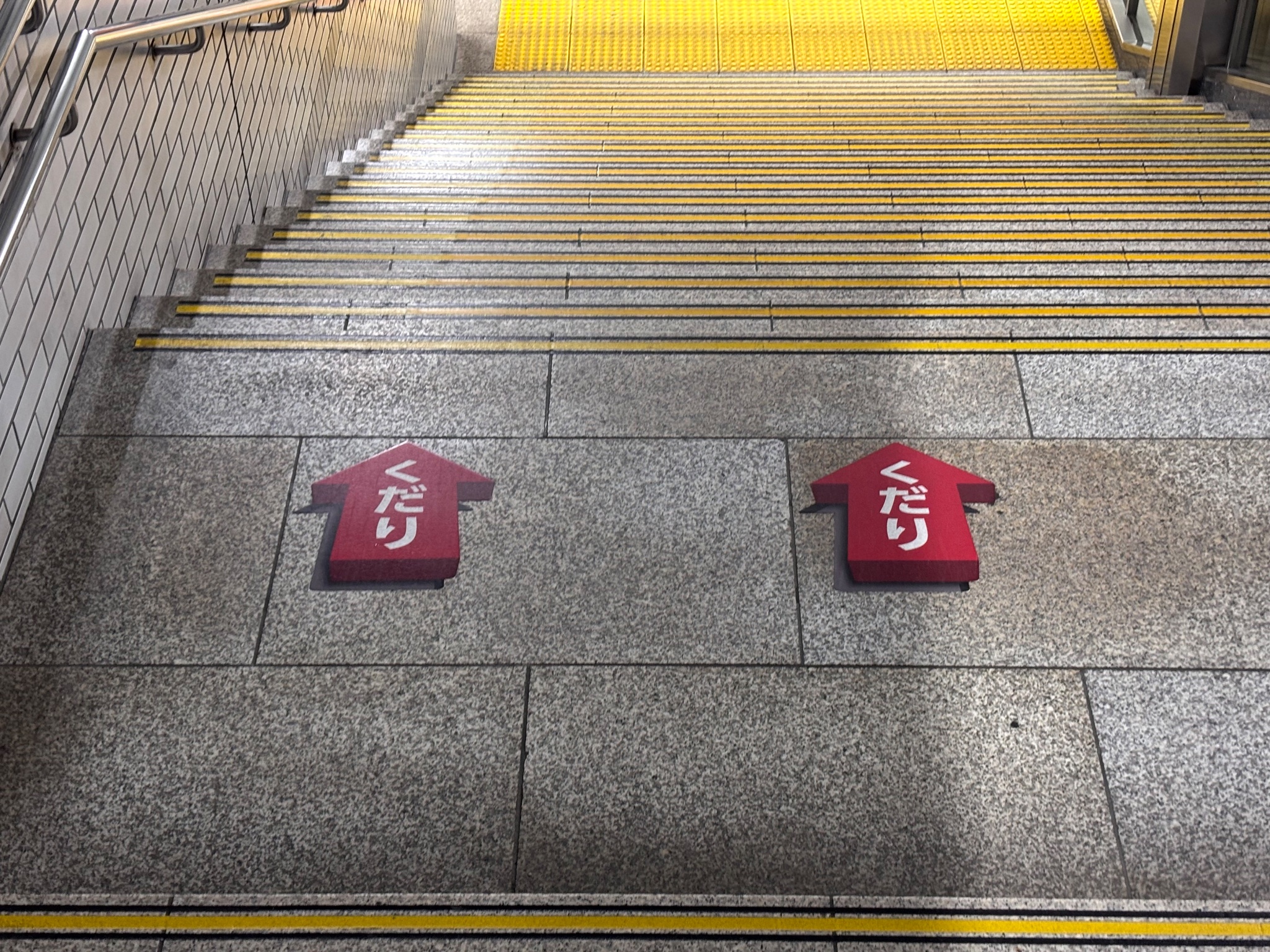 たしかになんで怖いのかな?って考えると…・ ストライプすぎて段鼻になってない・ だから踏面と同化してる・ 平坦に見えて段差を認識しにくい・ 壁と床が同化して踏面がわかりづらい・ だから足の踏み場に迷う・ 途中リズムかわってる…?