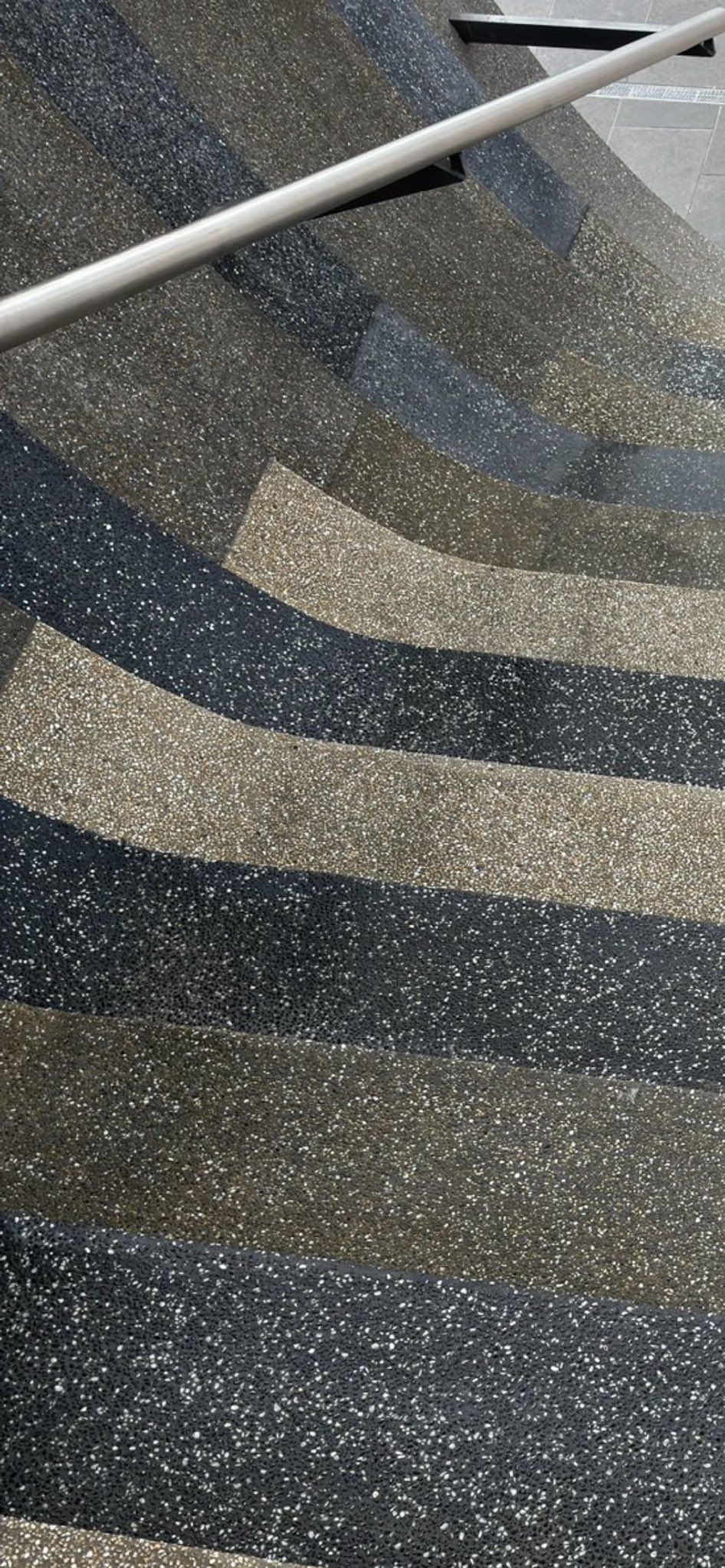 これかな?段差を認識させる情報が少な過ぎるね壁?も地続きになってて最悪移動することによる視差で多少は情報が得られるけど、歩いてみないとなんとも材質のツブツブが余計に情報の入りにくさを増長させてるような4枚目は普通の階段 https://t.co/jsZvIXSonR