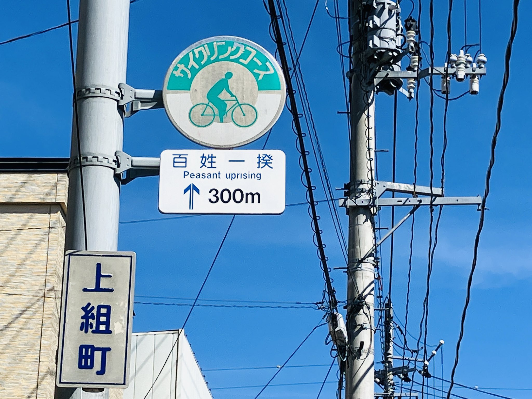 上組町から300mということで、早瀬川百姓一揆の碑までの標識みたいですね。三閉伊一揆という江戸後期に1万人以上が加わった大規模一揆。peasant uprisingって書かれると映画タイトルっぽくてかっこいいな…https://t.co/k1l3zBtj5N