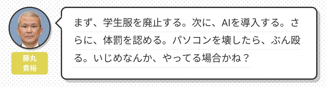 @viwywagy 学生服廃止とai導入しながら体罰合法化するの、令和と昭和が共存してておもろい