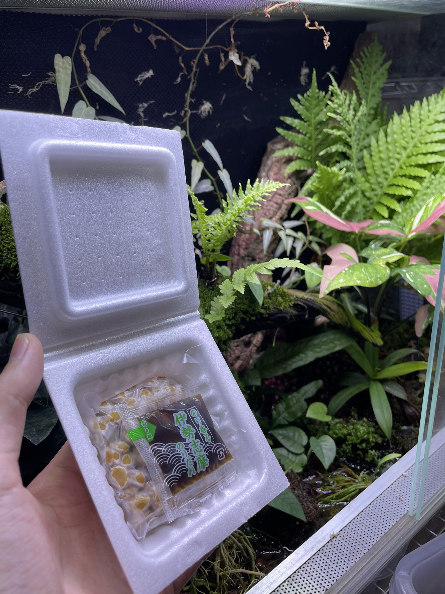 やあ!立ち上げ初期のテラリウムの前で納豆をかき混ぜると、空気中に舞った納豆菌がテラリウム内に入り込んで、カビが繁殖するために必要な養分を先に食べてくれるから、カビが生えにくくなるぞ! https://t.co/QrRLfzeX1c