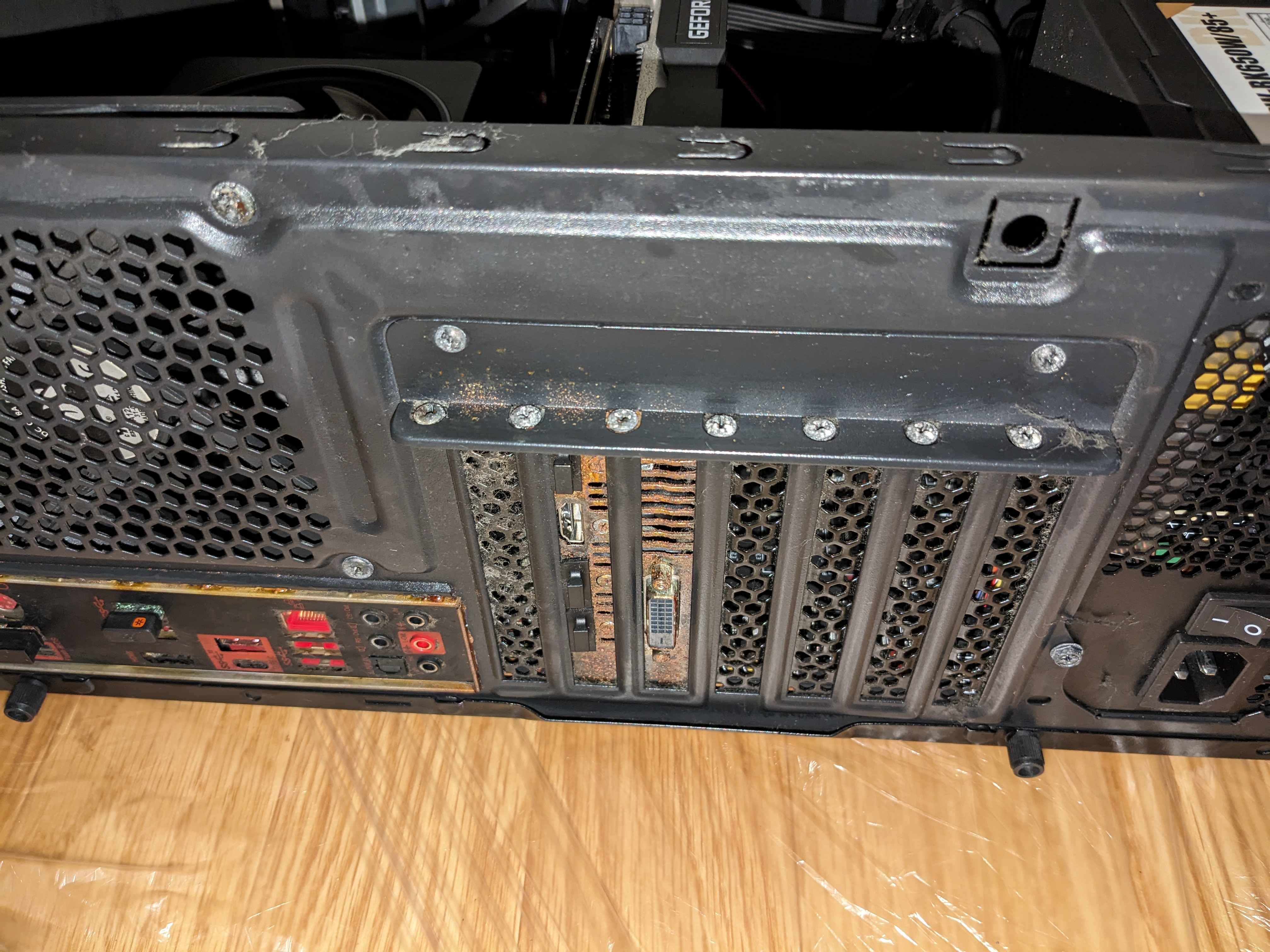 ちなみに、2枚目の中央、チーズみたいに溶けてモニターに向かって垂れ下がってるやつ、エアコンです…