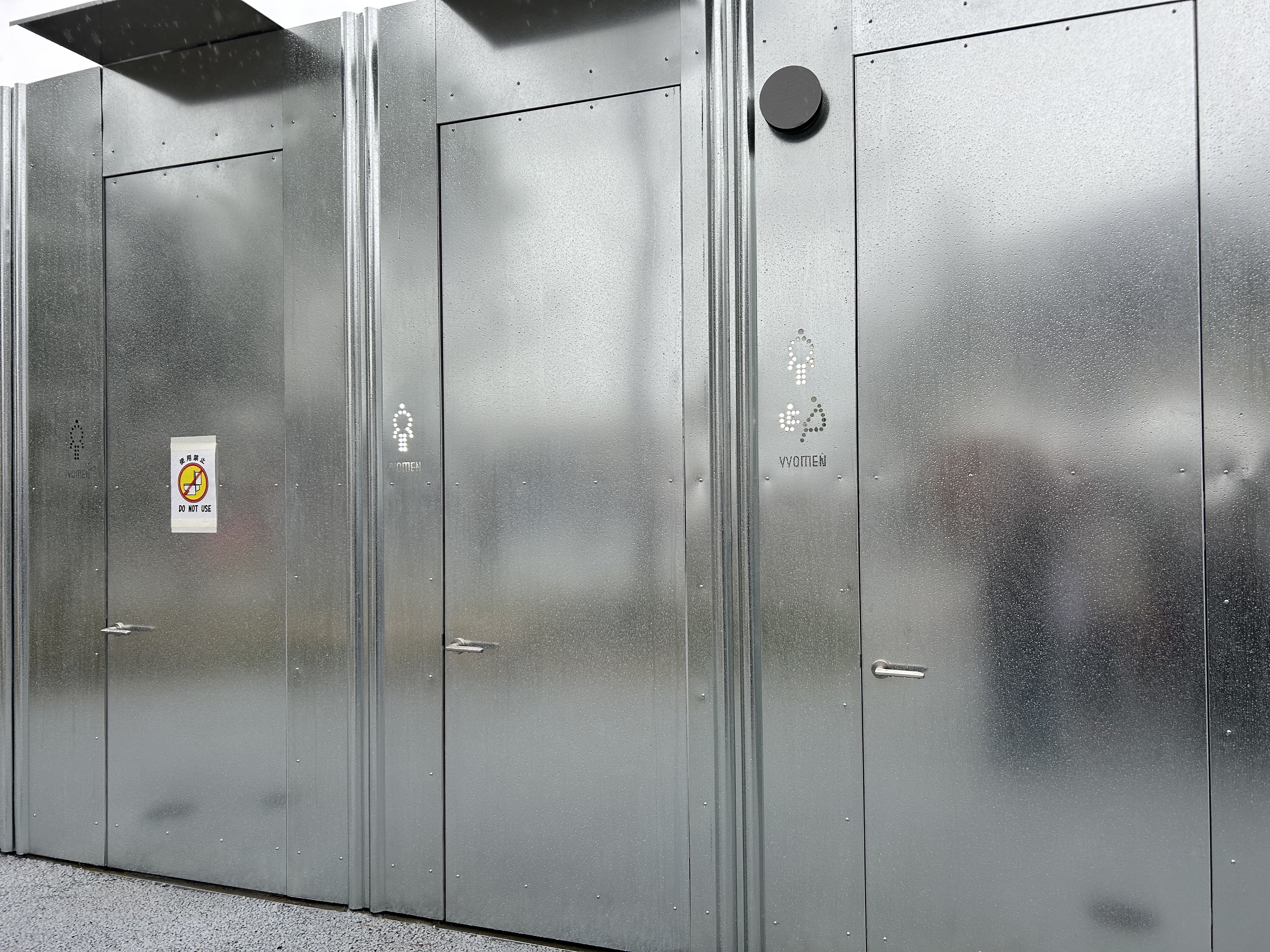 万博なう目の前でトイレ破壊された😅このトイレは入り口と出口が別なんですが、それが掲示されてないので「いつまでも出てこない」と勘違いした人が扉破壊してた😂あーだから初日なのに使用中止マーク多いんだ https://t.co/Zs7wOJnMBB