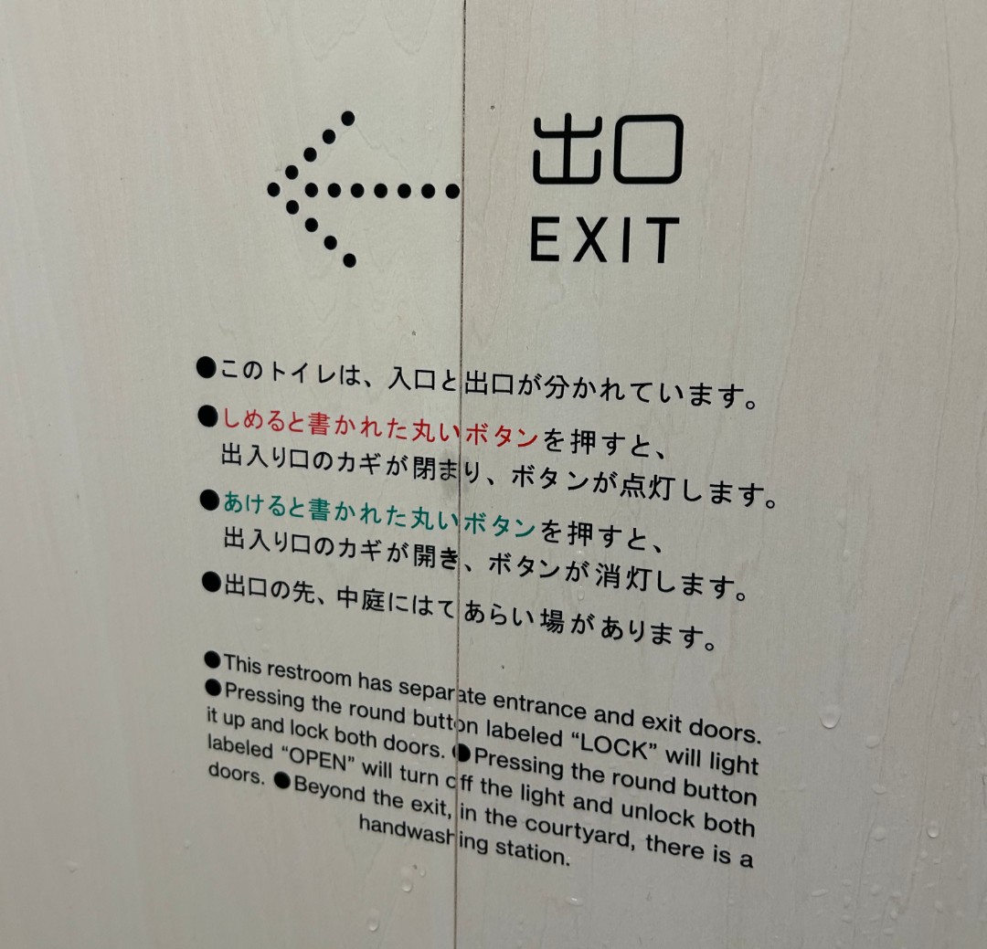 どのトイレもどのトイレも問題だらけだ 🫠入り口と出口を別にする意味は?これ、誰もが読んで理解出来ますか?英語が読めない外国人はこれが読めますか?なんでこんな事をするのだろう。 https://t.co/INPvkMsjXD