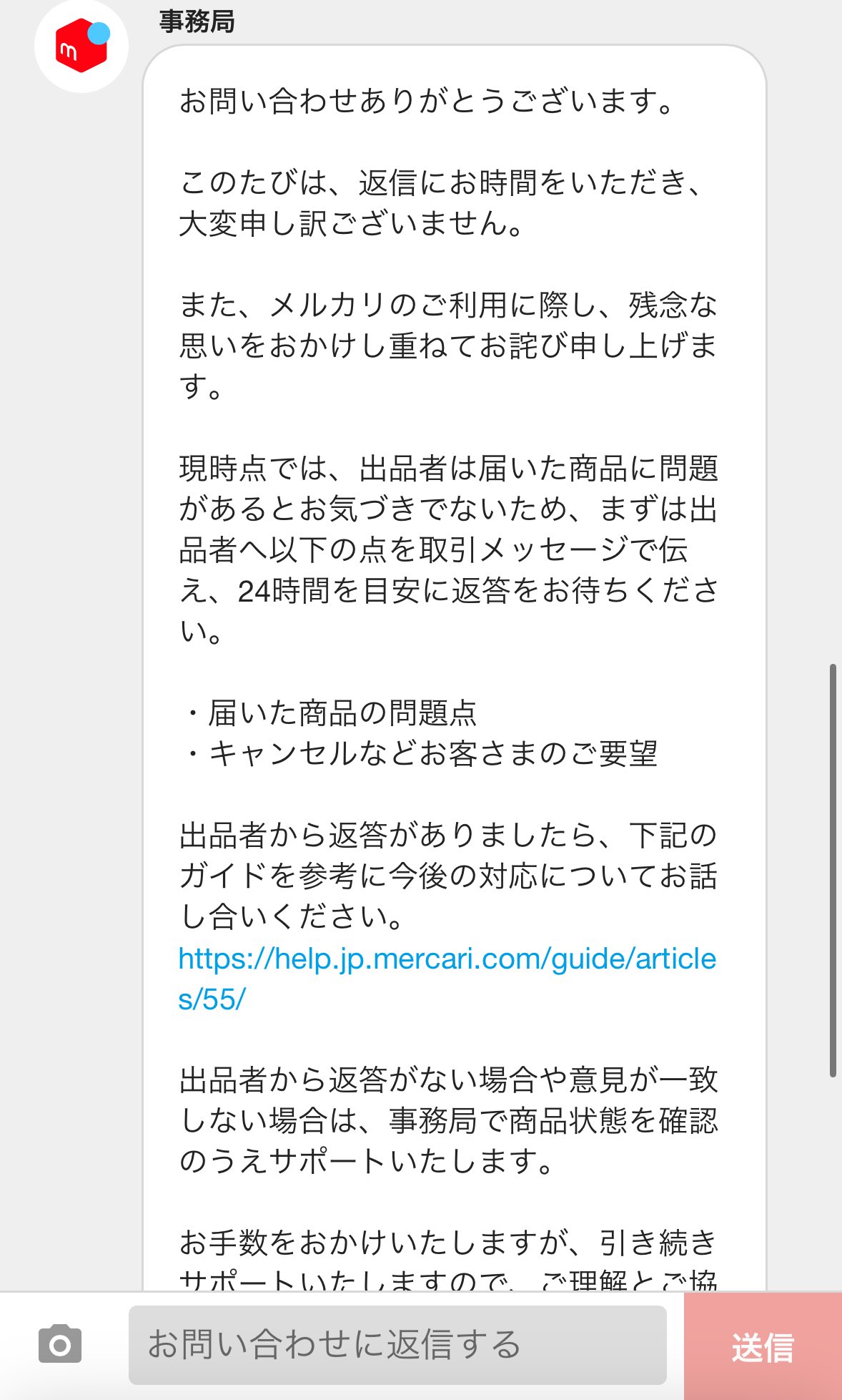 この手のトラブルって利用者同士のトラブル(誰が見ても出品者が100%悪質)↓購入者、運営に連絡↓メルカリが定型文だけで対応せず↓購入者、SNSで拡散↓メルカリから手のひら返しの謝罪と対応のメッセージ来る↓無事、返金がいつもの流れだからSNSあげた方が問題解決早い説