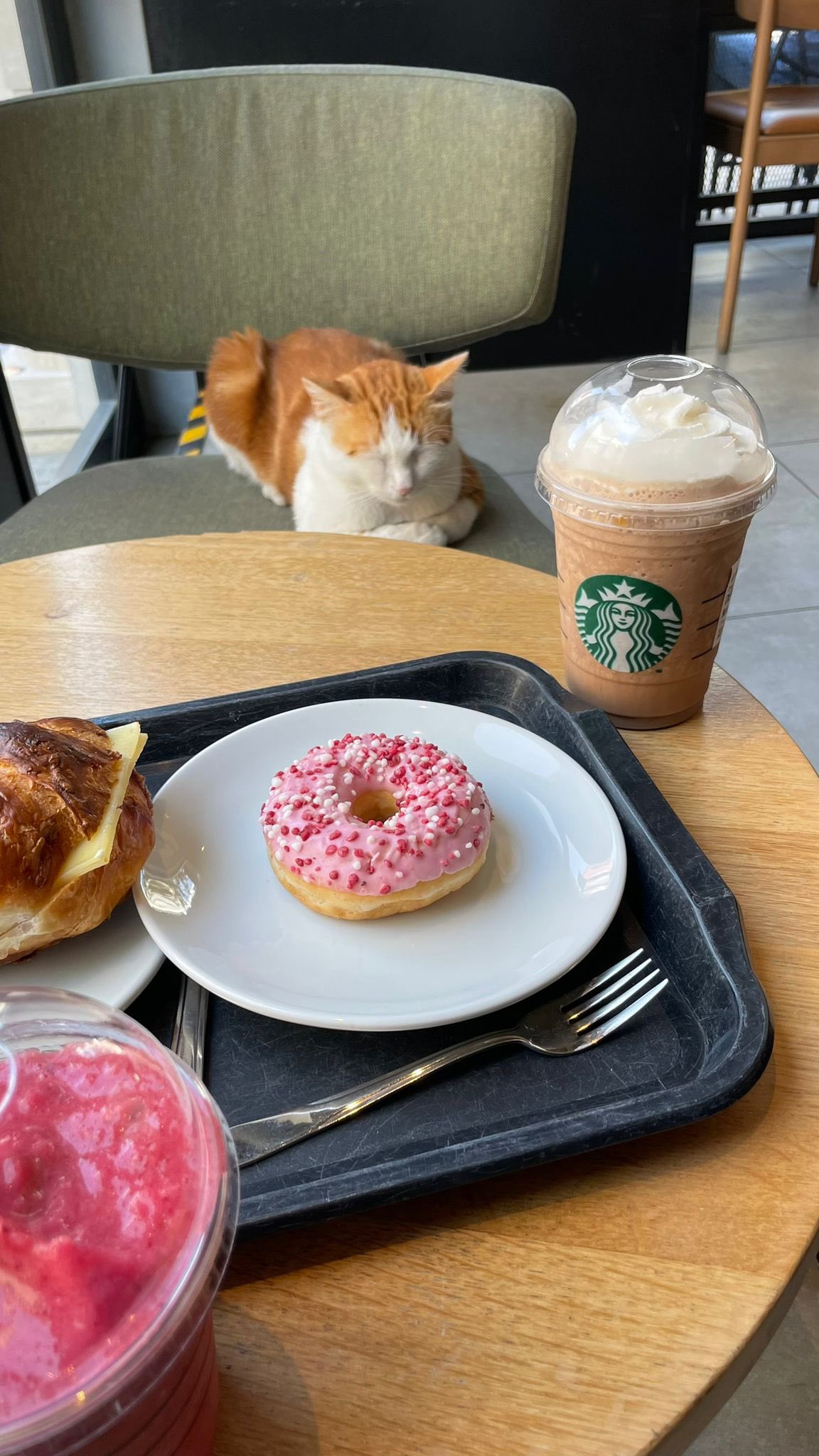 某ファミレスの猫ロボットは違う人の料理を取りそうになると「それじゃないにゃ〜!」って注意してくるらしいけどこっちは本物の猫ちゃんが警告してくれんにょか!🐱⚠️素敵だにゃー💛店員さんとの信頼関係バッチリできてるにゃ!