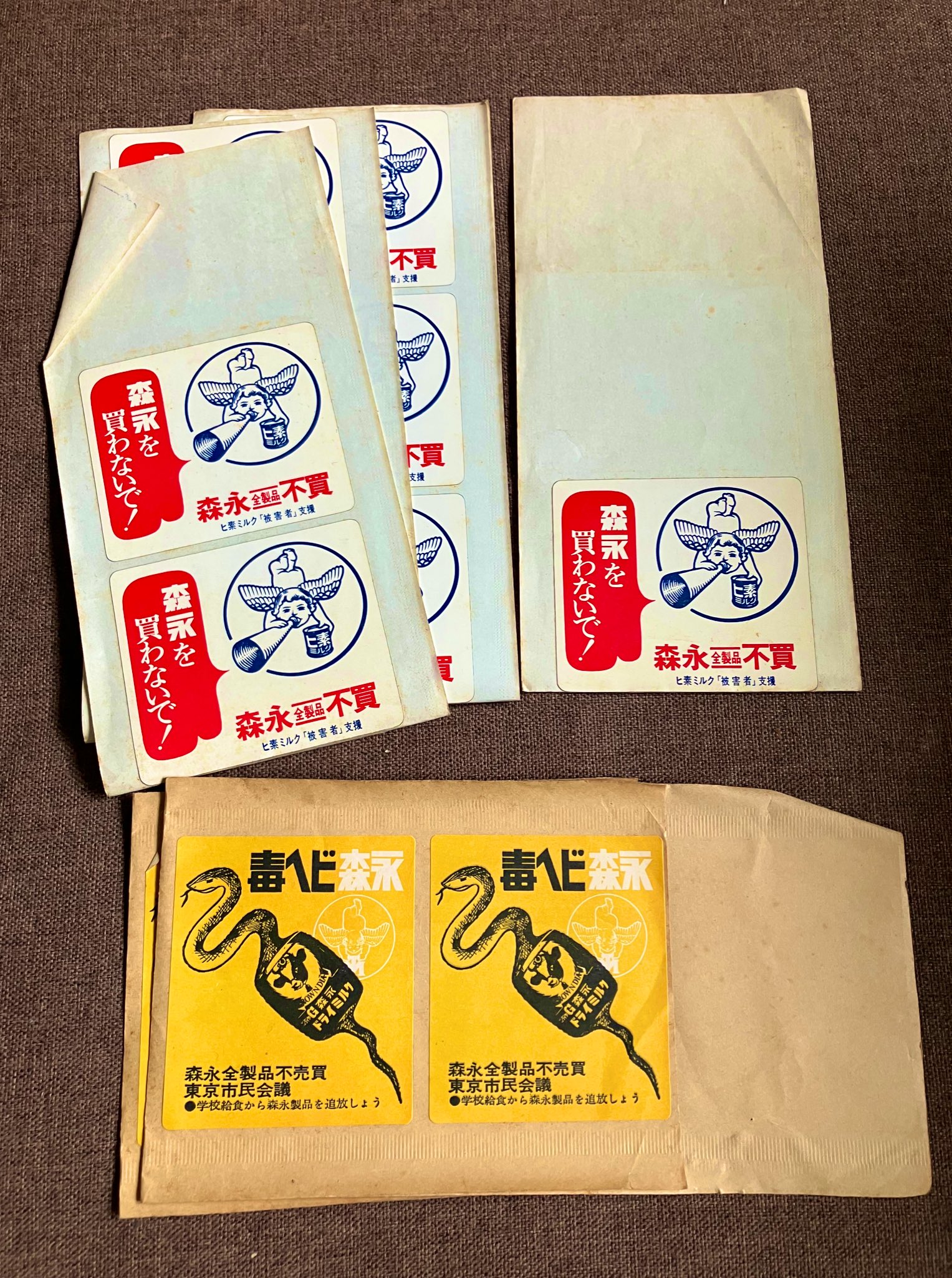 グリコ森永事件当時のデモ運動用のステッカーもなかなかのやばさ… https://t.co/Oxuyetetx1