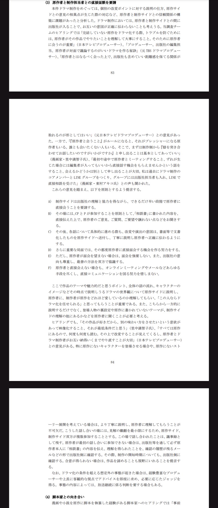 @V2sAnxuyOTecJMA 確かに一致してる人1名いるな……🤔そして日テレ系列。そもそも制作会社が同じ。……報告書で書いたように、原作者とのコミュニケーションを見直して是正して、原作者ときちんと相談した上であのドラマになっているんだろうか…… https://t.co/wMDRzTUy8H