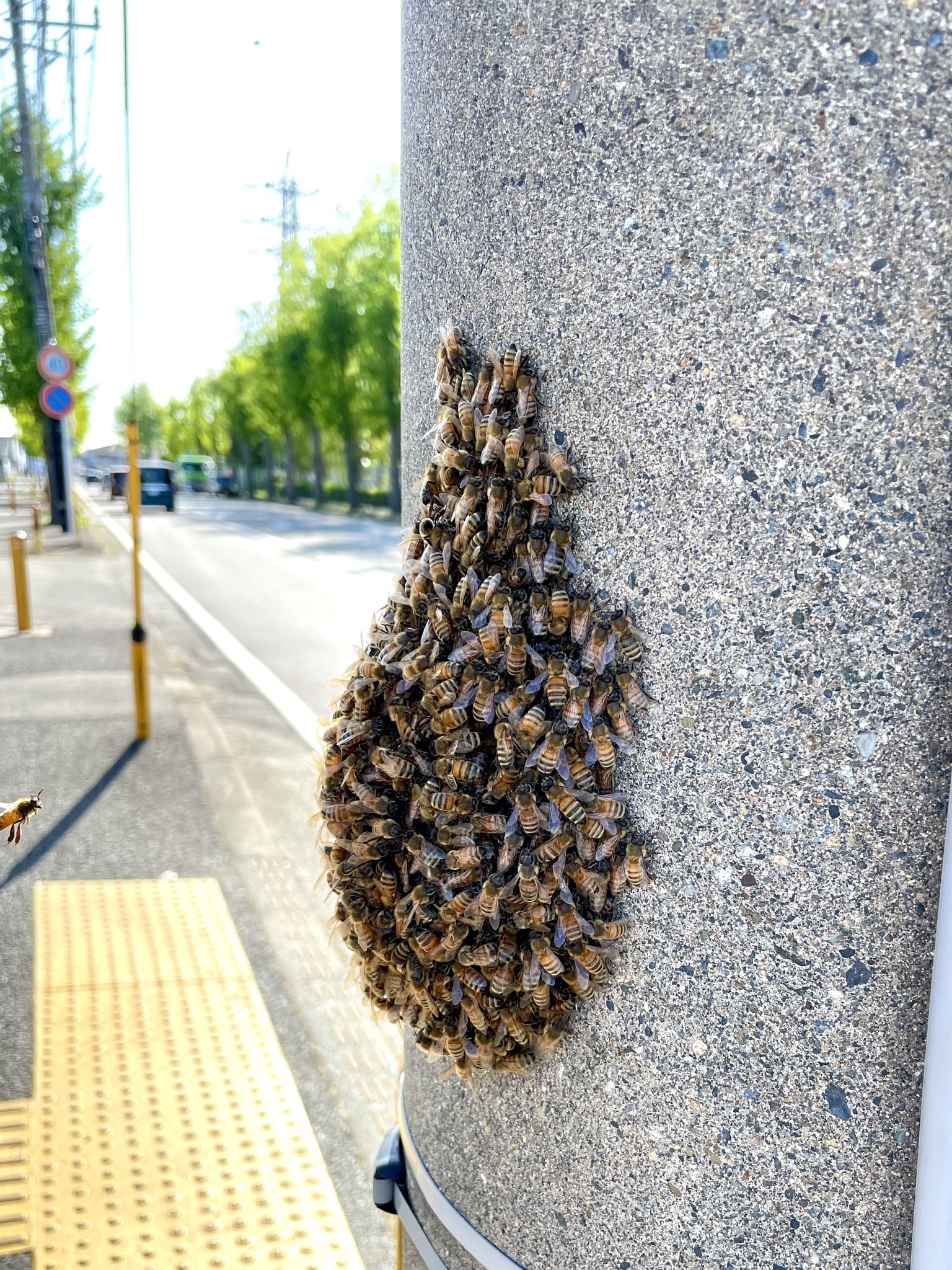 「電柱にミツバチが密集してるんだけど…何これ!?」→追い払わずそっとしておくべき理由がコチラ🐝