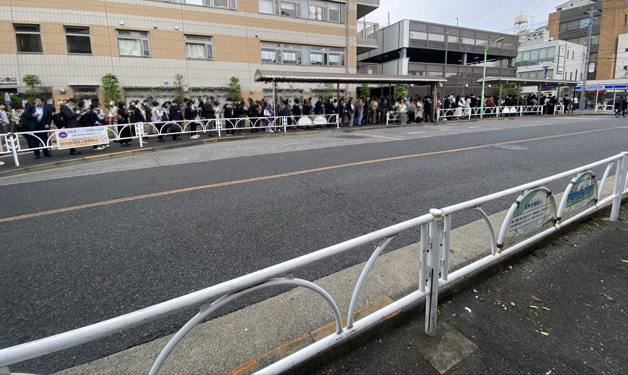 京王線人身事故のため、振替輸送のバス停がディズニーランド状態 https://t.co/I59MeFMpVo