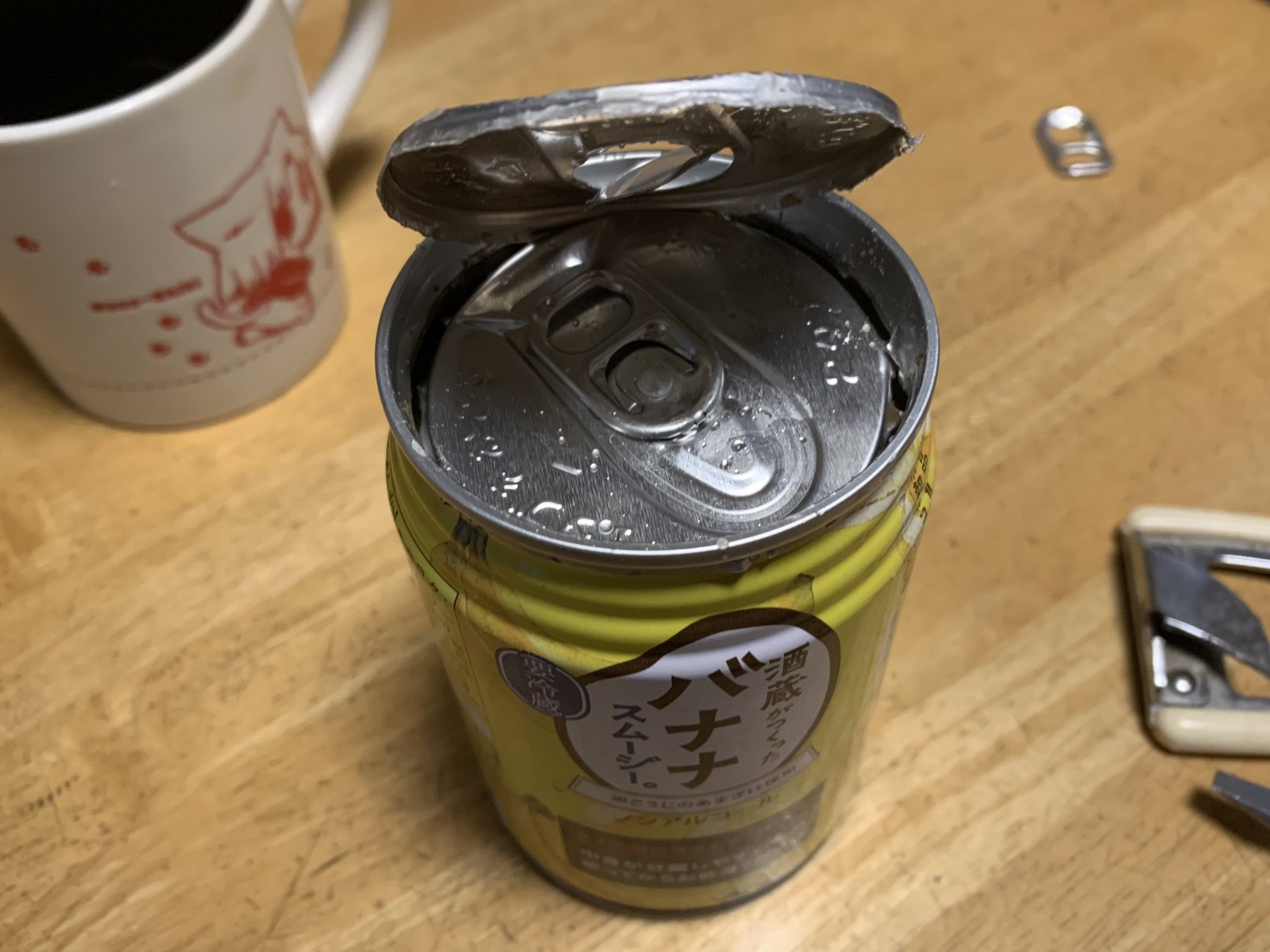 @S15__K_S 物自体はご当地もののバナナスムージーです。缶の蓋が二重になってました…僕も初めてです https://t.co/O4iyS8XbAl