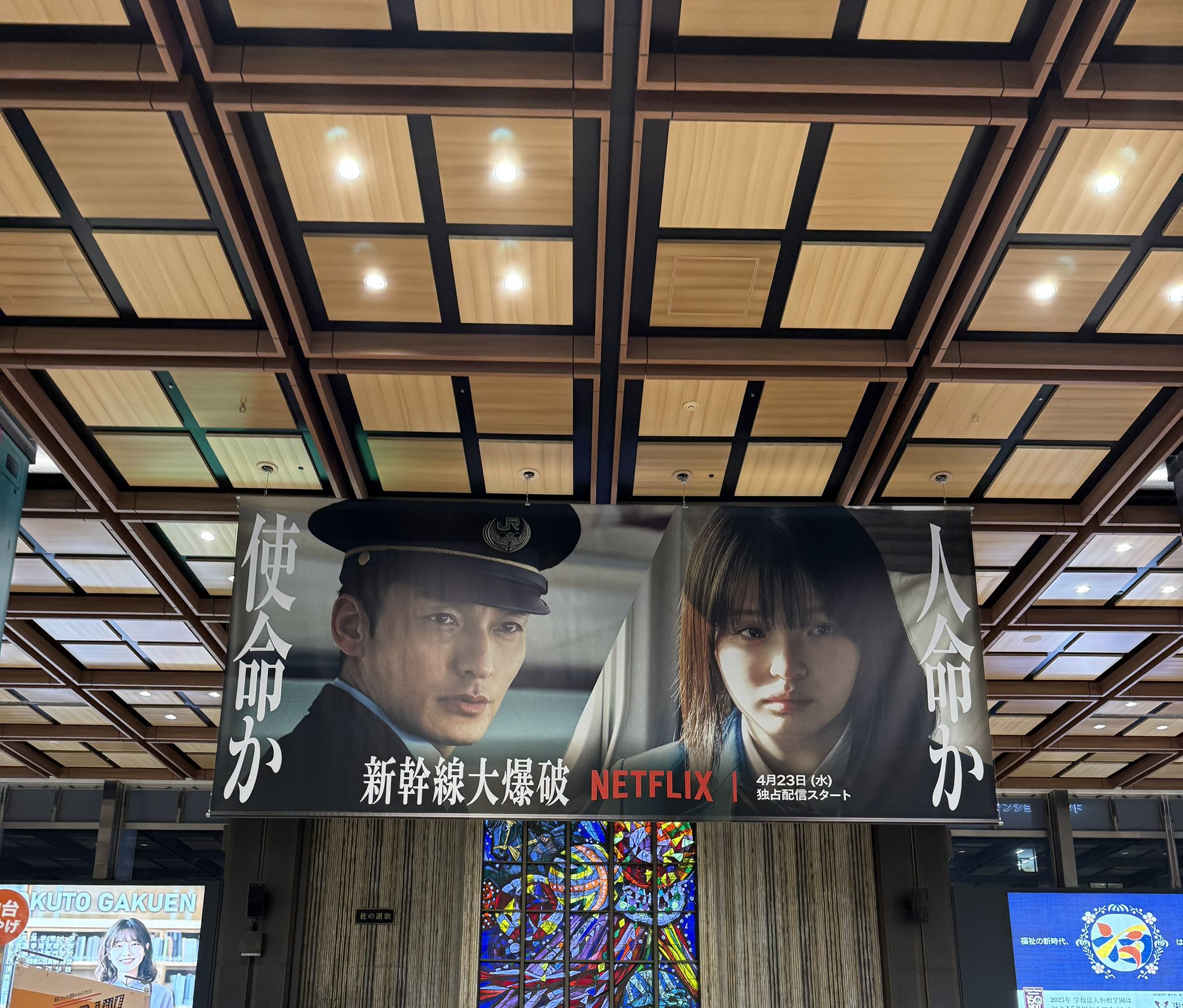 因みに盛岡駅にはこの巨大広告はありません。通過シーンに怒っているから出せない…ではなく、単に広告スペースが無いのと、現在2階は改装工事中の状態なので広告をあげるのは厳しい状態。#新幹線大爆破