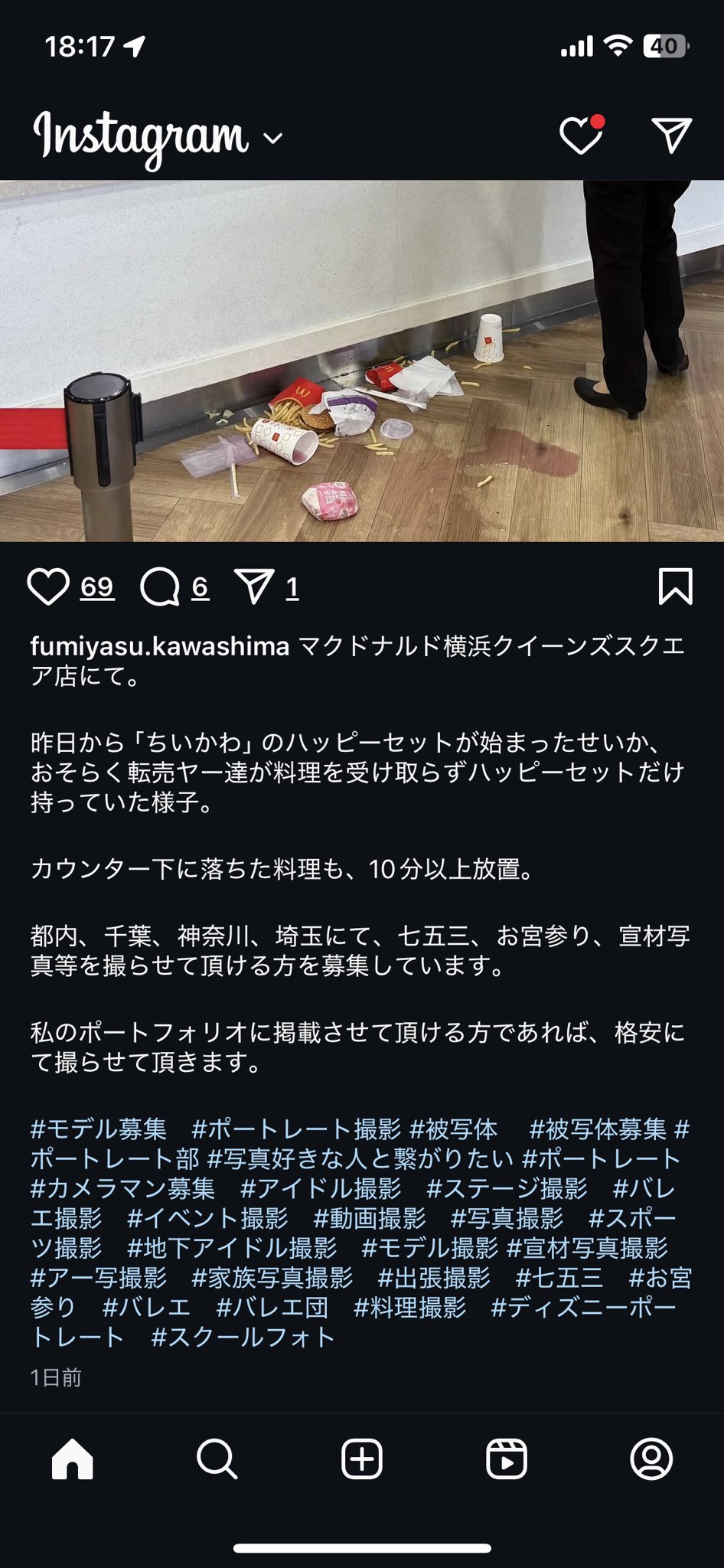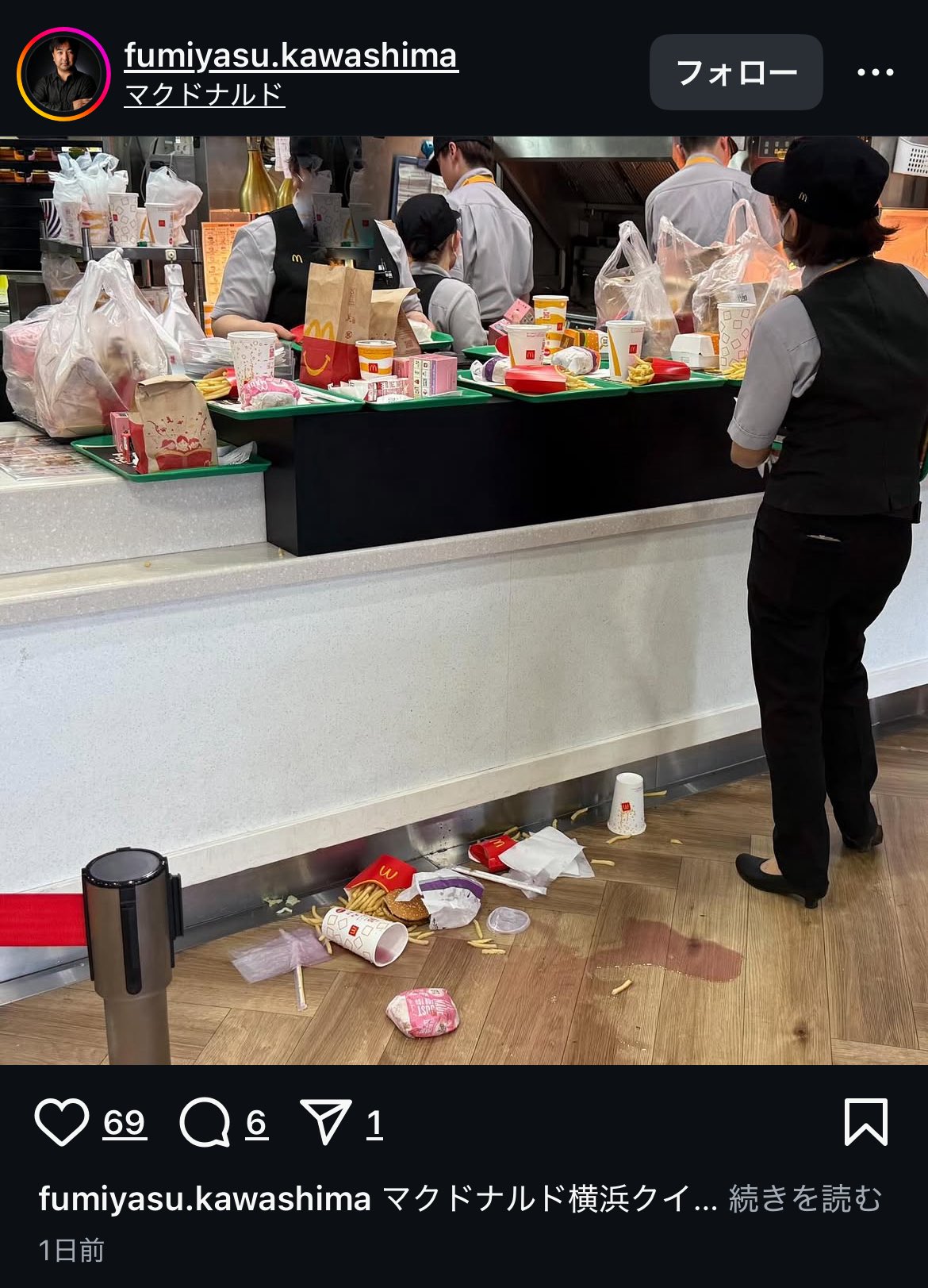 @NScVdviPJE71064 コレ⋯、商品受け取り場所なのに商品落ちてたりこんなにごちゃごちゃしてるのおかしくない?ハッピーセットはSサイズのポテトとドリンクだし画像で見るにMサイズ💦場所よく分からないけどスクエア店ではないみたいだし、確かに転売はクソですが誤情報はダメですよ💦💦