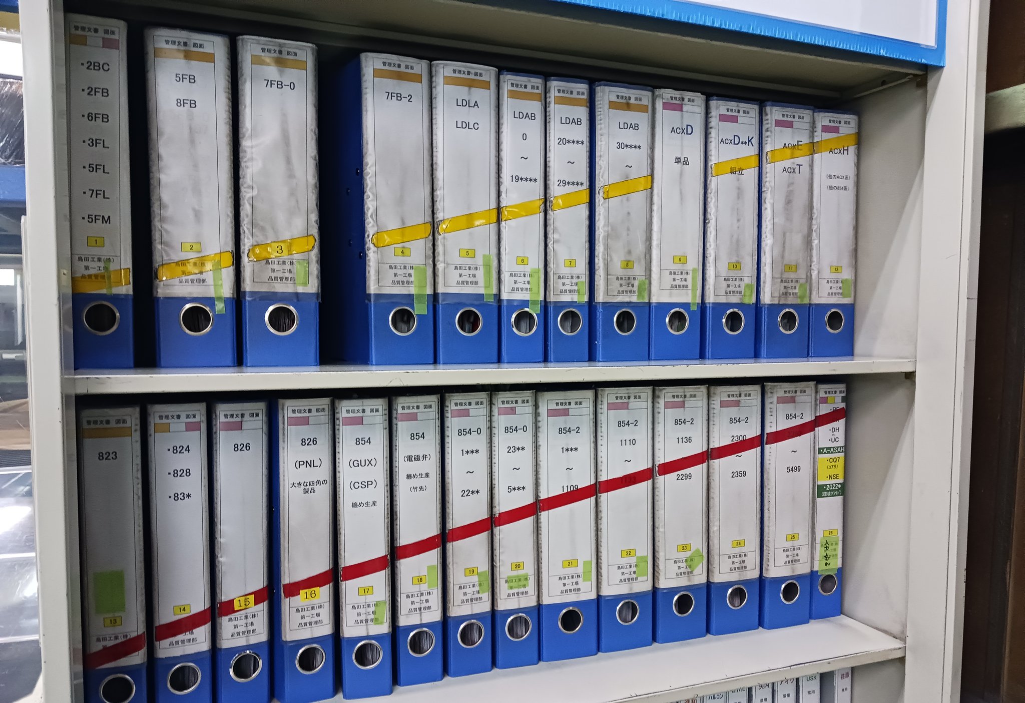 どうも、Yでございます品管で使っていたファイルについての小話。決まった順番、位置でファイルを置きたかったので、ファイルに番号を振るだけではなく、順番に入れないと線が繋がらないようにして置いていたというお話。その方が分かりやすくて見やすいでしょ! https://t.co/07JePttWzN