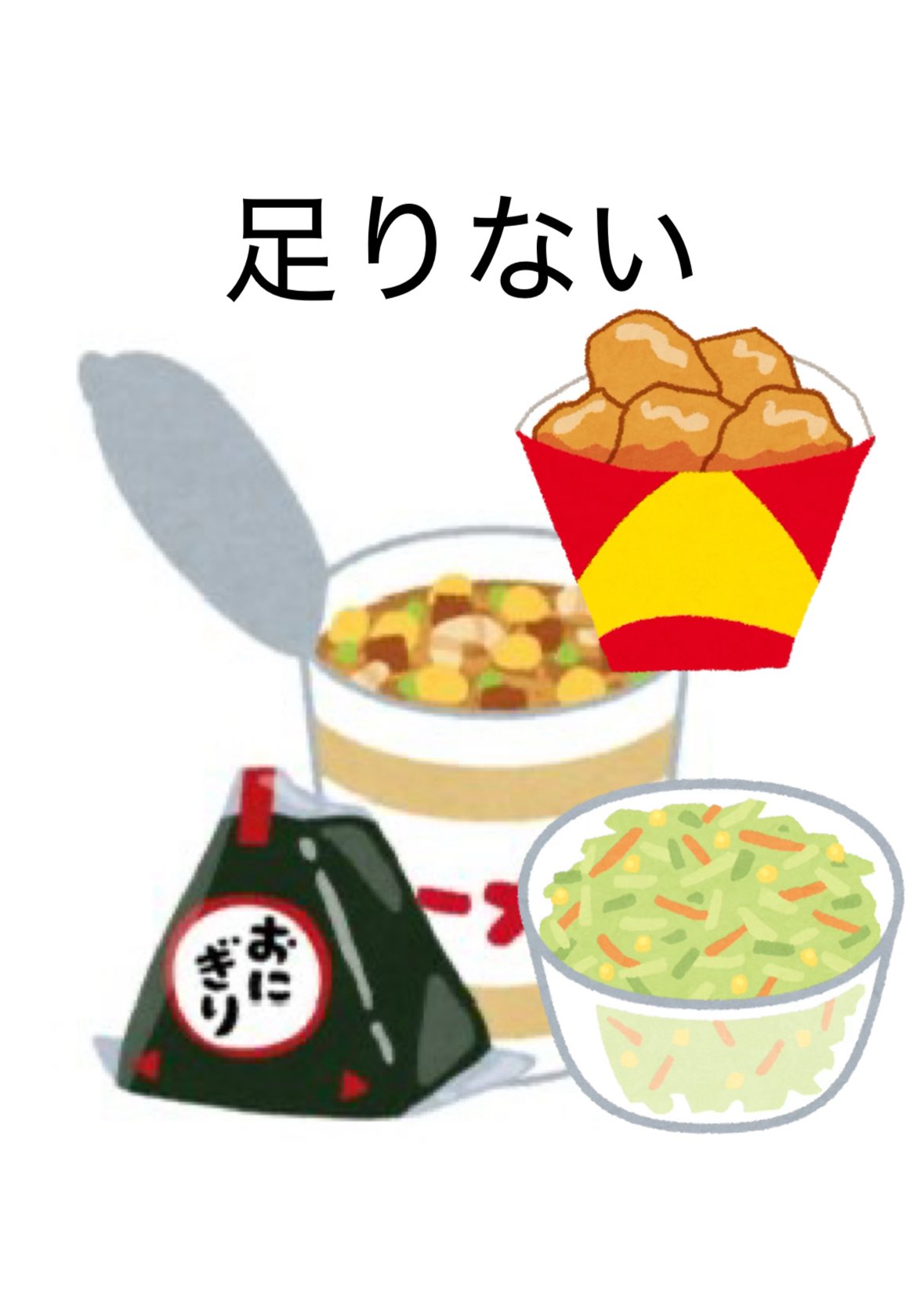@nikukai_kuu ゆでたまごかサラダチキンをつけるといいね。美味いし。栄養価偏ってると満腹感がバグるから、バランス取るだけで満足感上がるよ✨
