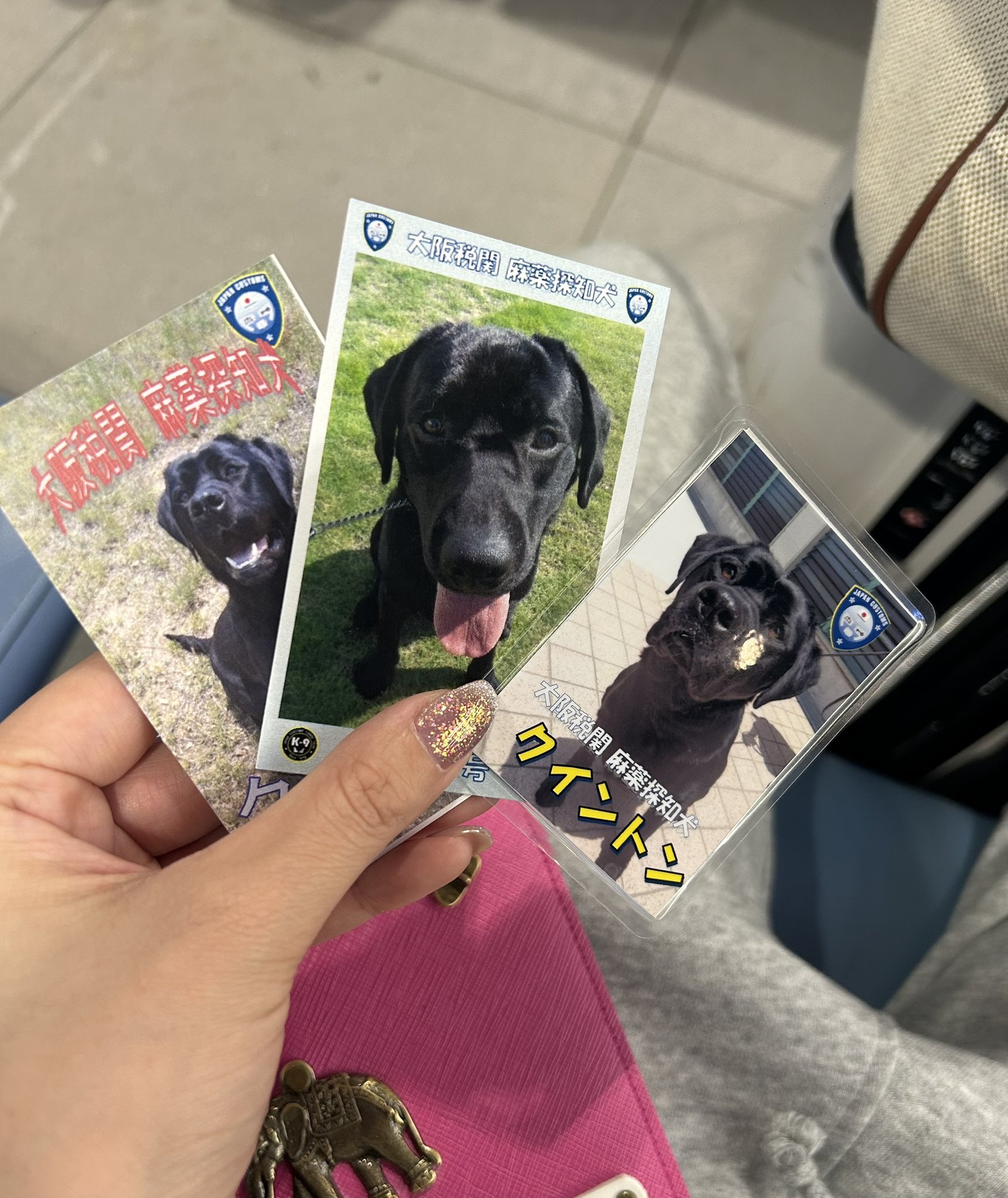 空港で麻薬探知犬の訓練に協力して欲しいって言われてお礼に麻薬探知してくれたイッヌのプロフィールカード貰えて帰国早々幸 https://t.co/jiIkUsW0MZ