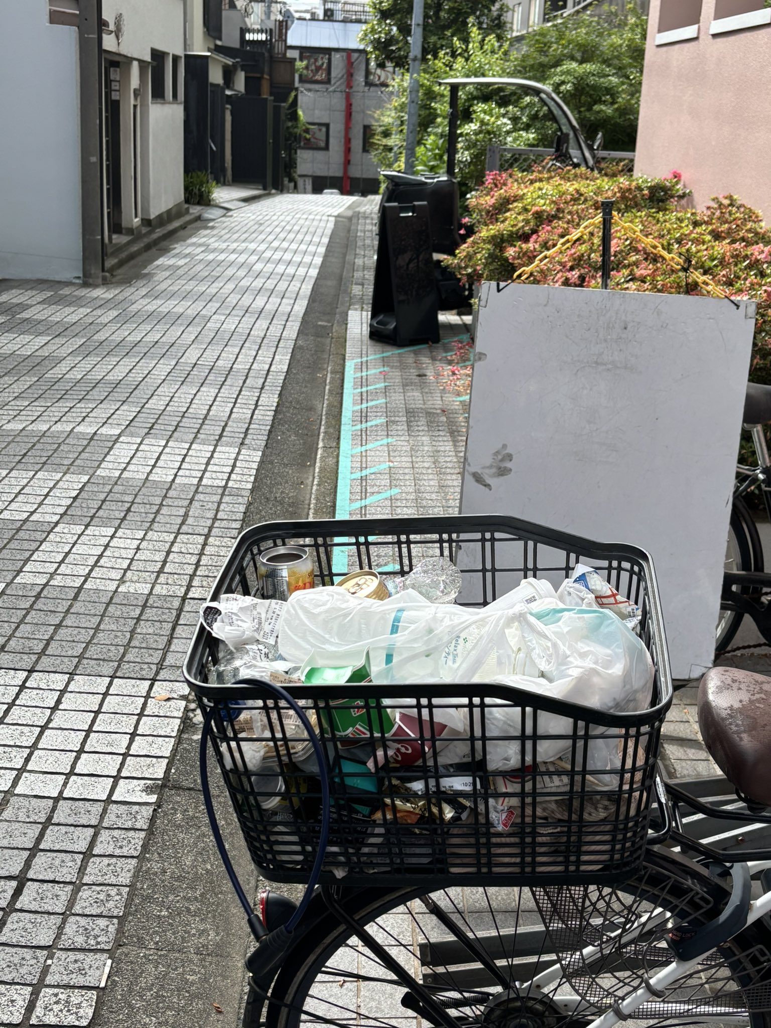 マンションの自転車置き場を無理矢理LUUPの基地にしたら利用者がマンション住人の自転車のカゴをゴミ箱にするようになった#LUUP https://t.co/hymIPJqgpC