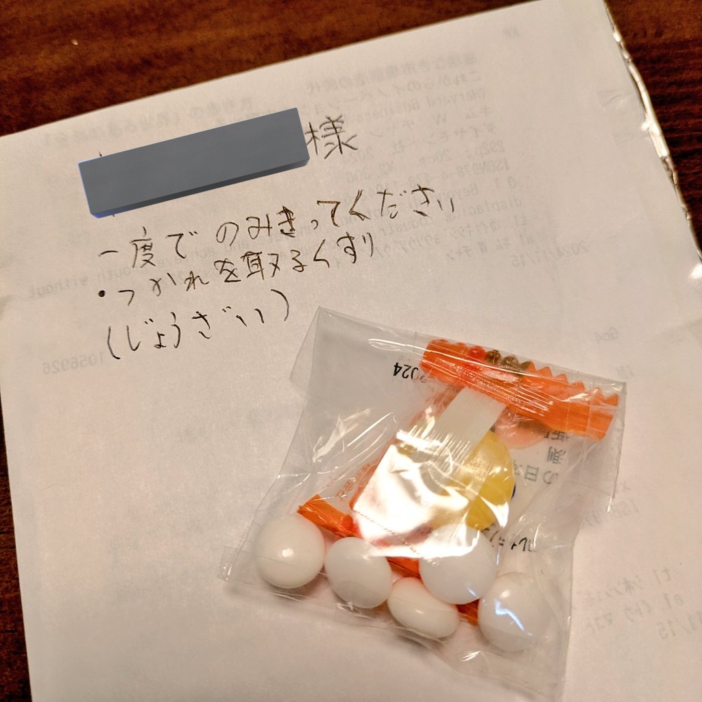 子どもが「つかれを取るくすり」を処方してくれた。中身はアメとヨーグレット https://t.co/FgwT65CZU8