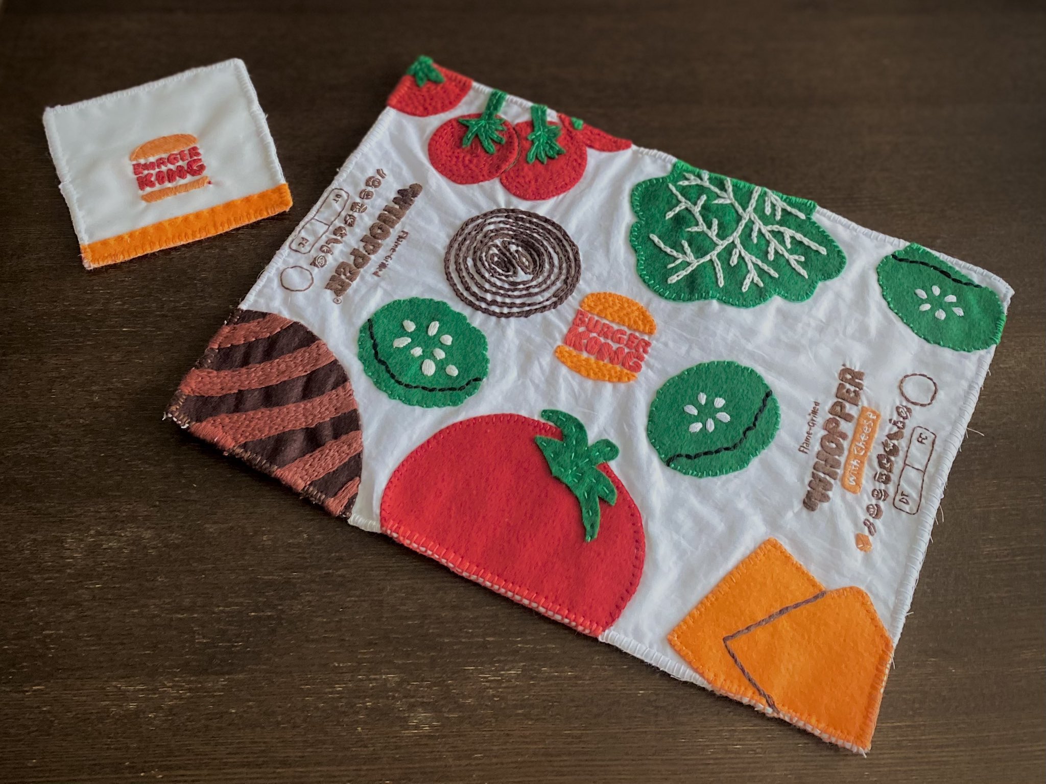 「公式レベルだ…」職人が刺繍で再現した“バーガーキングの包装紙”が可愛い😳