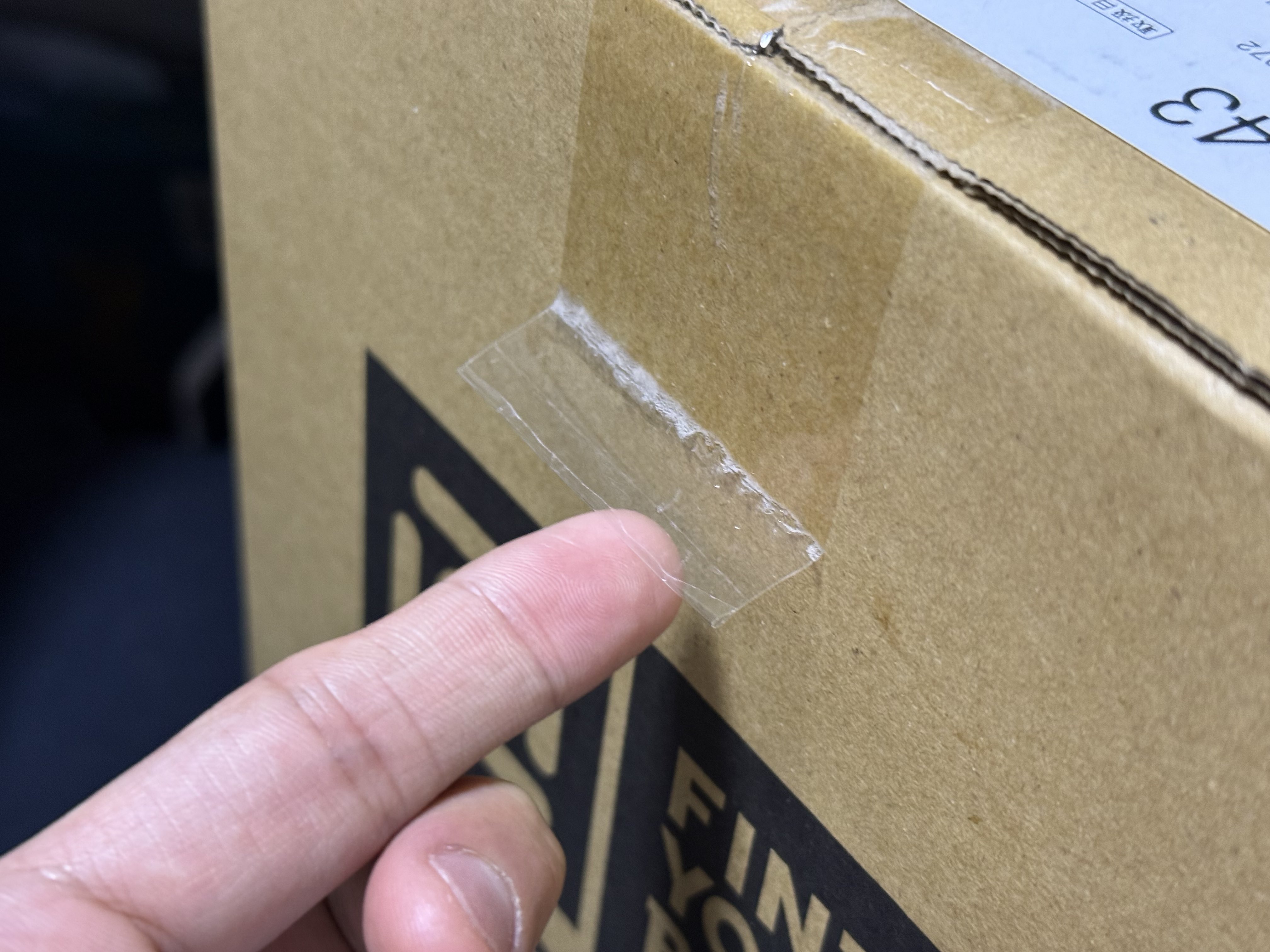 アッあの、コレ見た方あんまり真似しないで頂けると運送会社バイト的には助かります。そもそも貼り合わせてるだけのこのタイプのテープそんなに接着強度無くて……多分皆さんが思ってるより剥がれるので……出来れば横方向にもビッと補強して欲しくて……