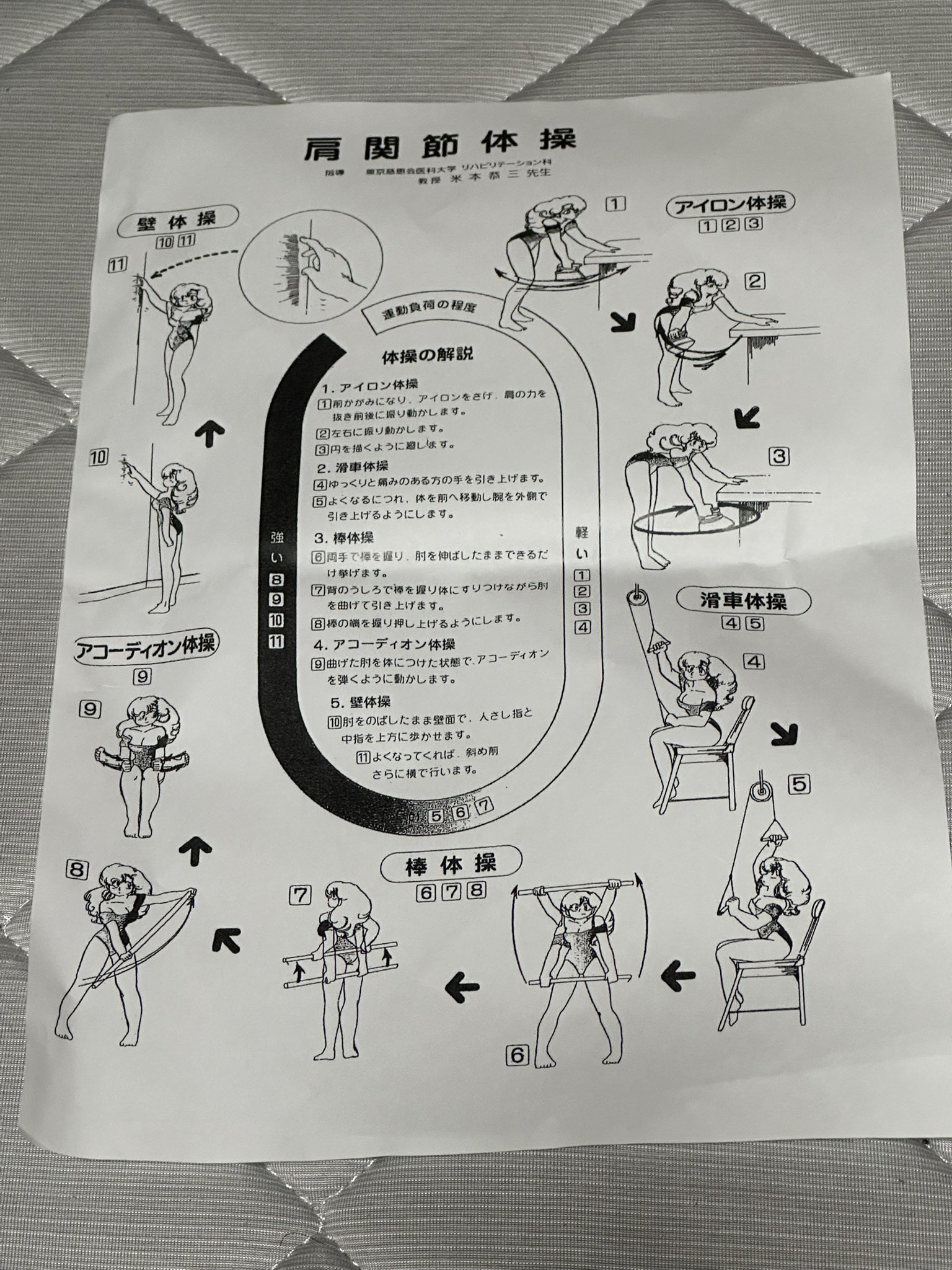 【五十肩】整体院で渡された「肩関節体操」チラシのイラストが80年代すぎる…😅