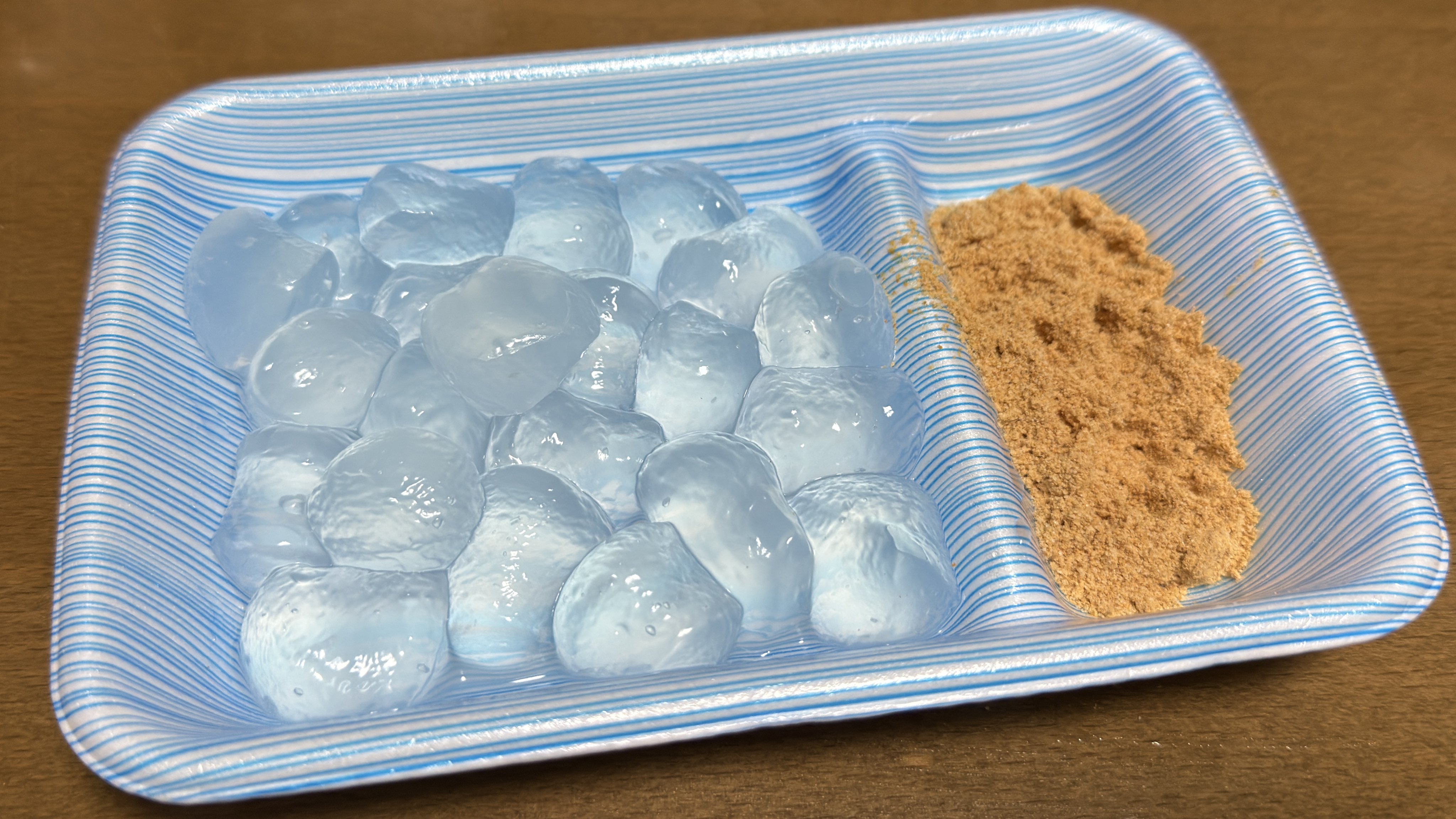 なるほど、九州でわらび餅に黒蜜入ってないのは東西の文化の違いかぁ。まぁ、黒蜜なくても全然問題ないけど。