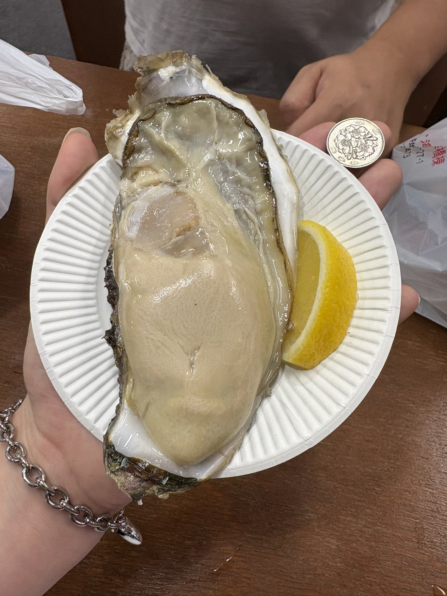 @kaoripomupomu 初めてみるサイズの牡蠣~🥰