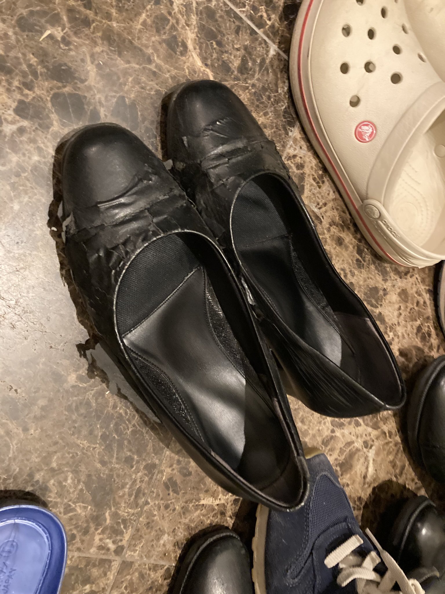 まさにこれ、長男の卒業式で履いた黒パンプス、学校着くまでは大丈夫だったのに、見送り前に崩壊した合皮、恐るべし https://t.co/h0e2OPDGDC