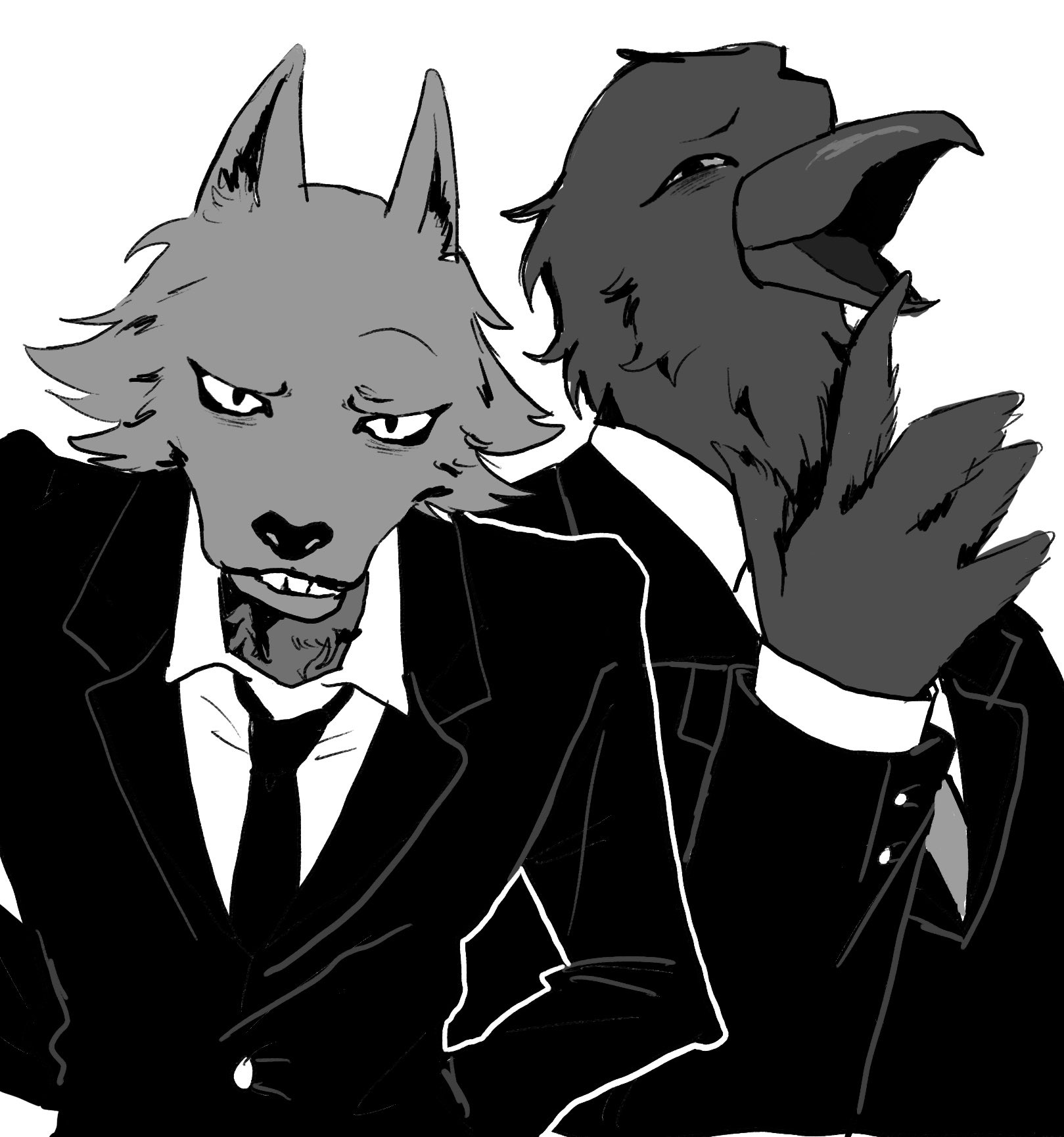 @690chocolate なんか動物なのに人間体の姿が想像できるぐらい表情が秀逸ですね…最後のダブルスーツのヒグマと太ったコモドドラゴンは確実に組関係の怖い人だと思う